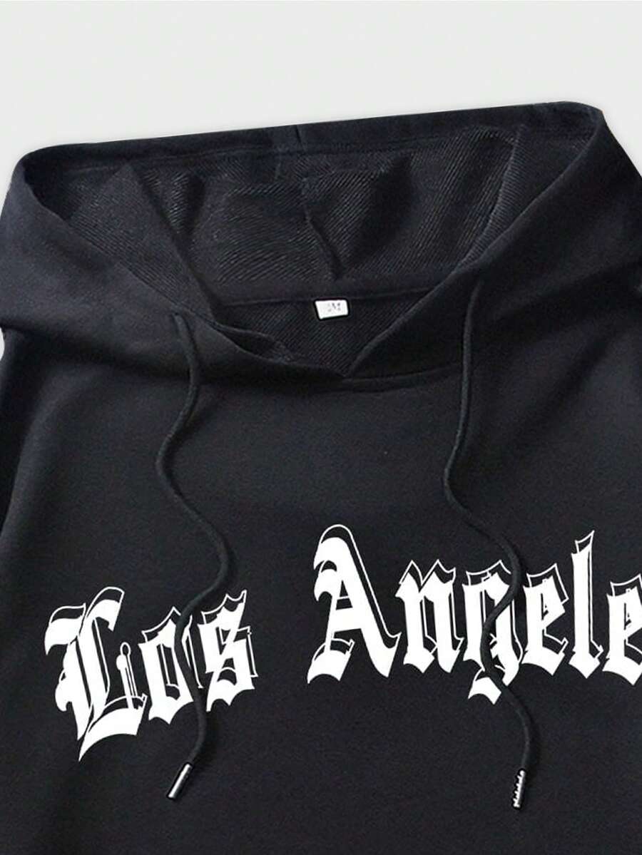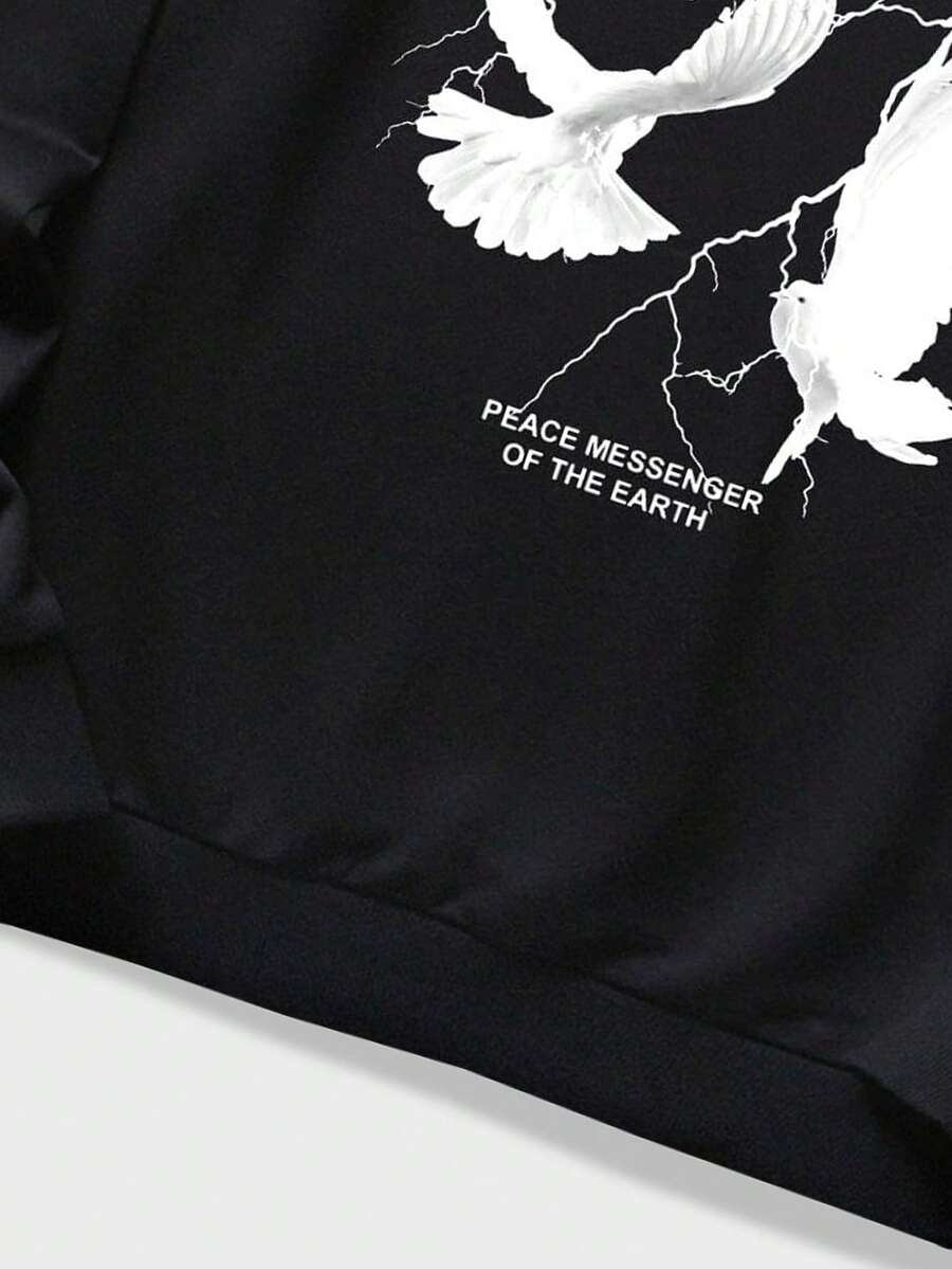 Goth Männer Hoodie mit Buchstabe Taube Muster, Tunnelzug