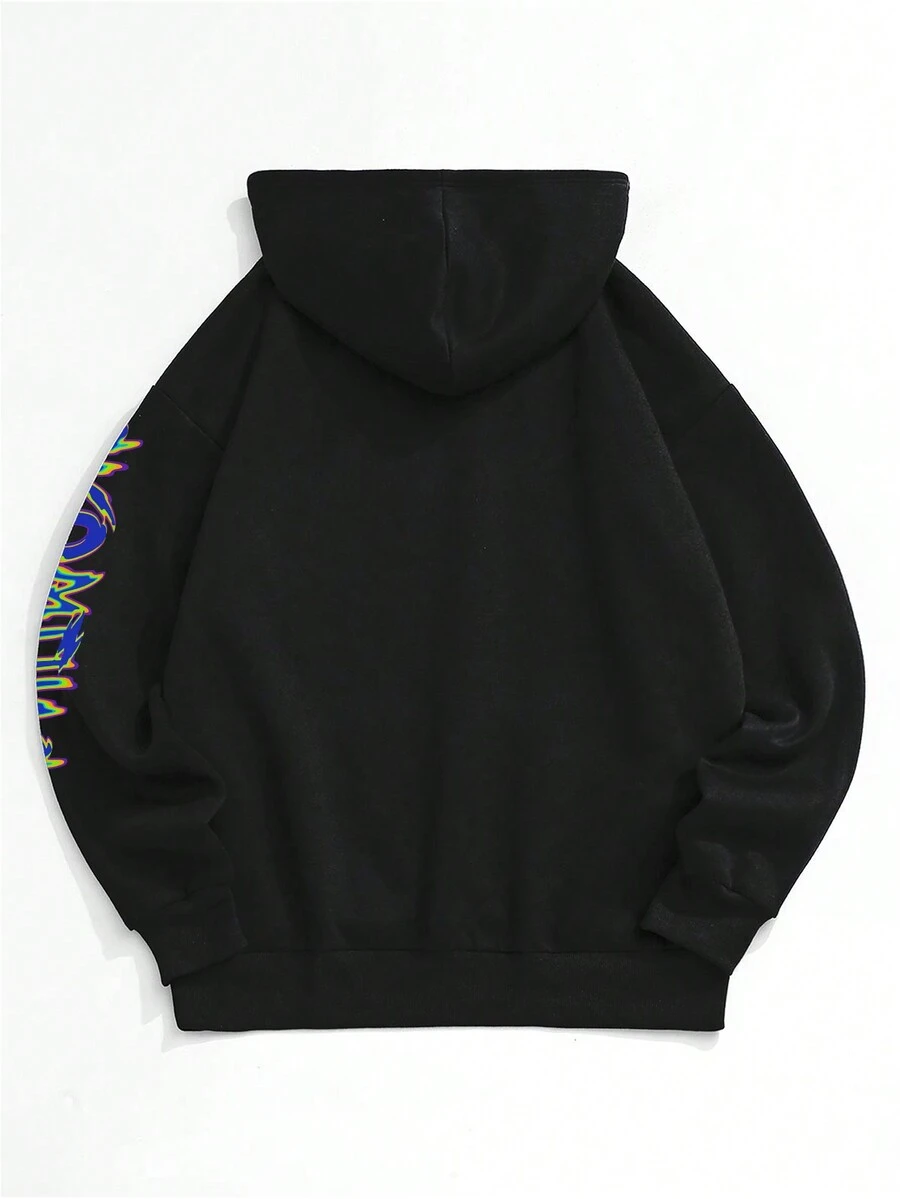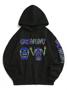 Goth Jungen Kapuzenpullover mit Kängurutaschen Kordelzug und Buchstaben- & Totenkopf Print