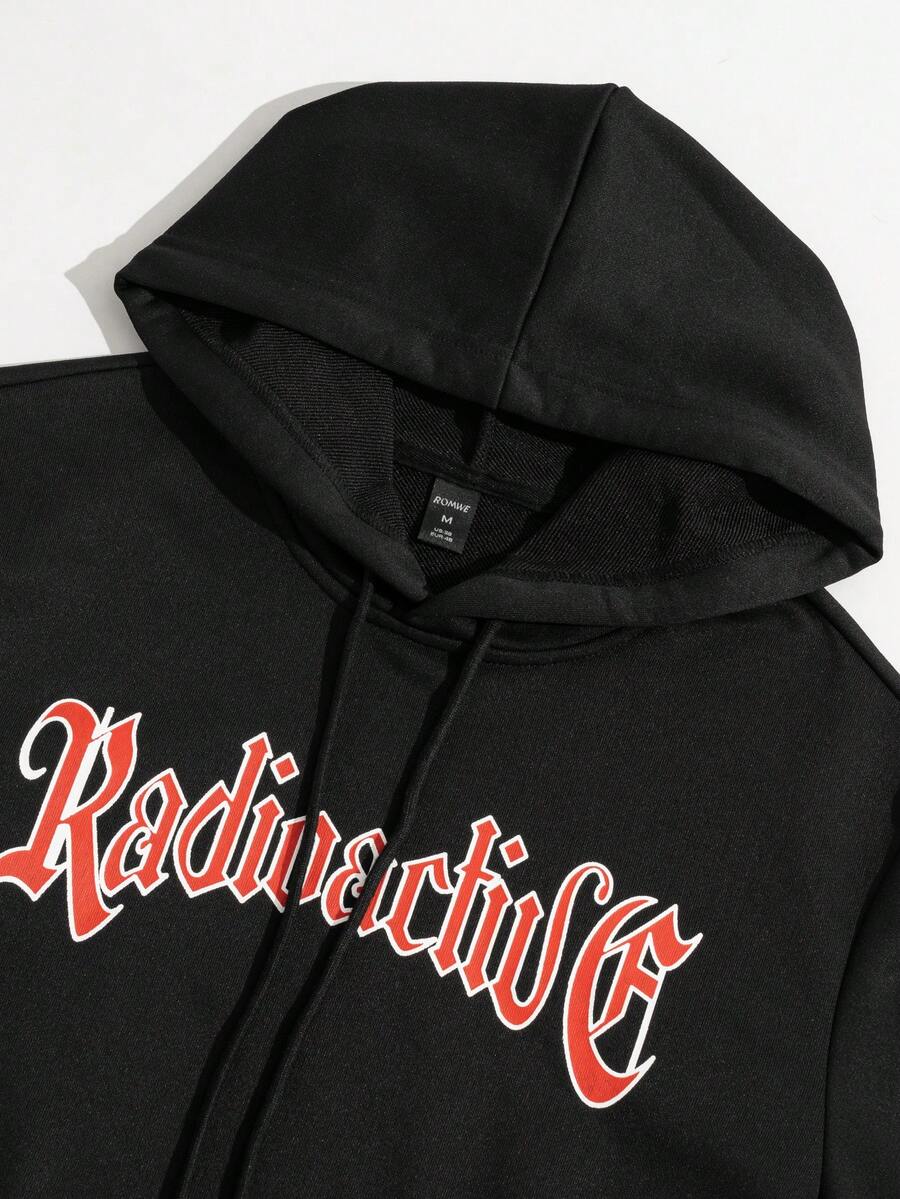 Goth Herren Briefgrafik Reißverschluss Kapuzenpulli Mit Zugband