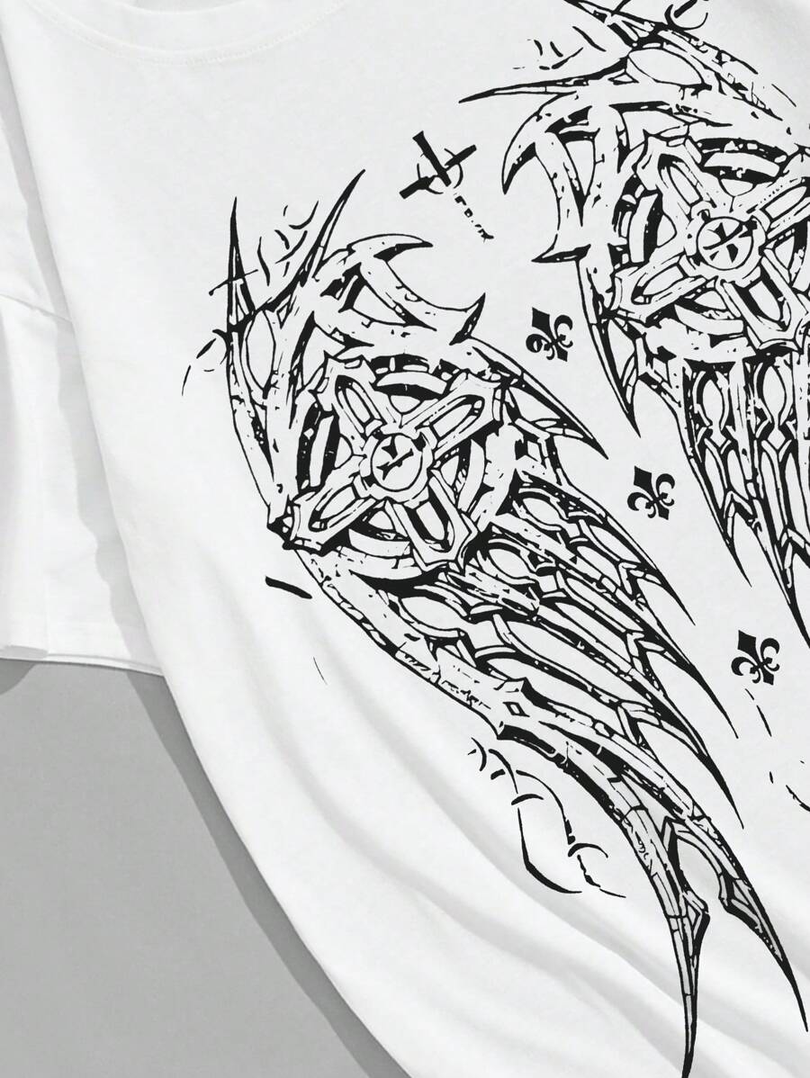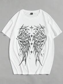 Goth Herren T-shirt Mit Kurzem Ärmel, Bedruckten Engel Flügeln Und Rundem Hals