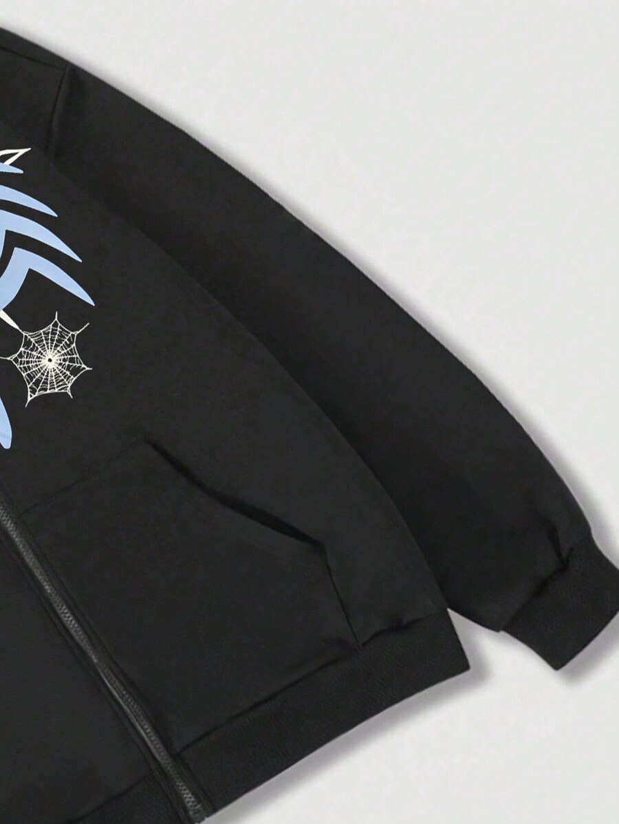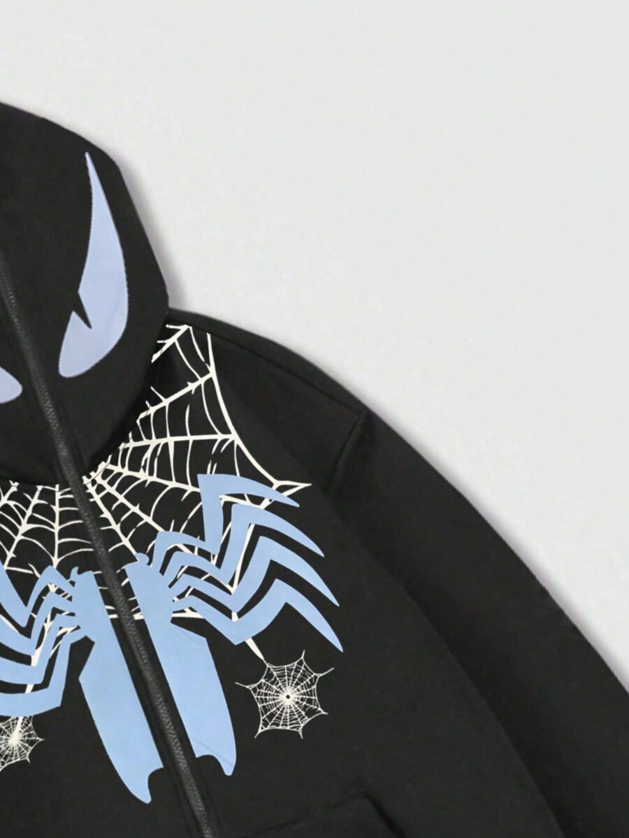 Goth Männer Kapuzenpulli Mit Reißverschluss Vorne Und Cartoon Spider Web Bedruckung