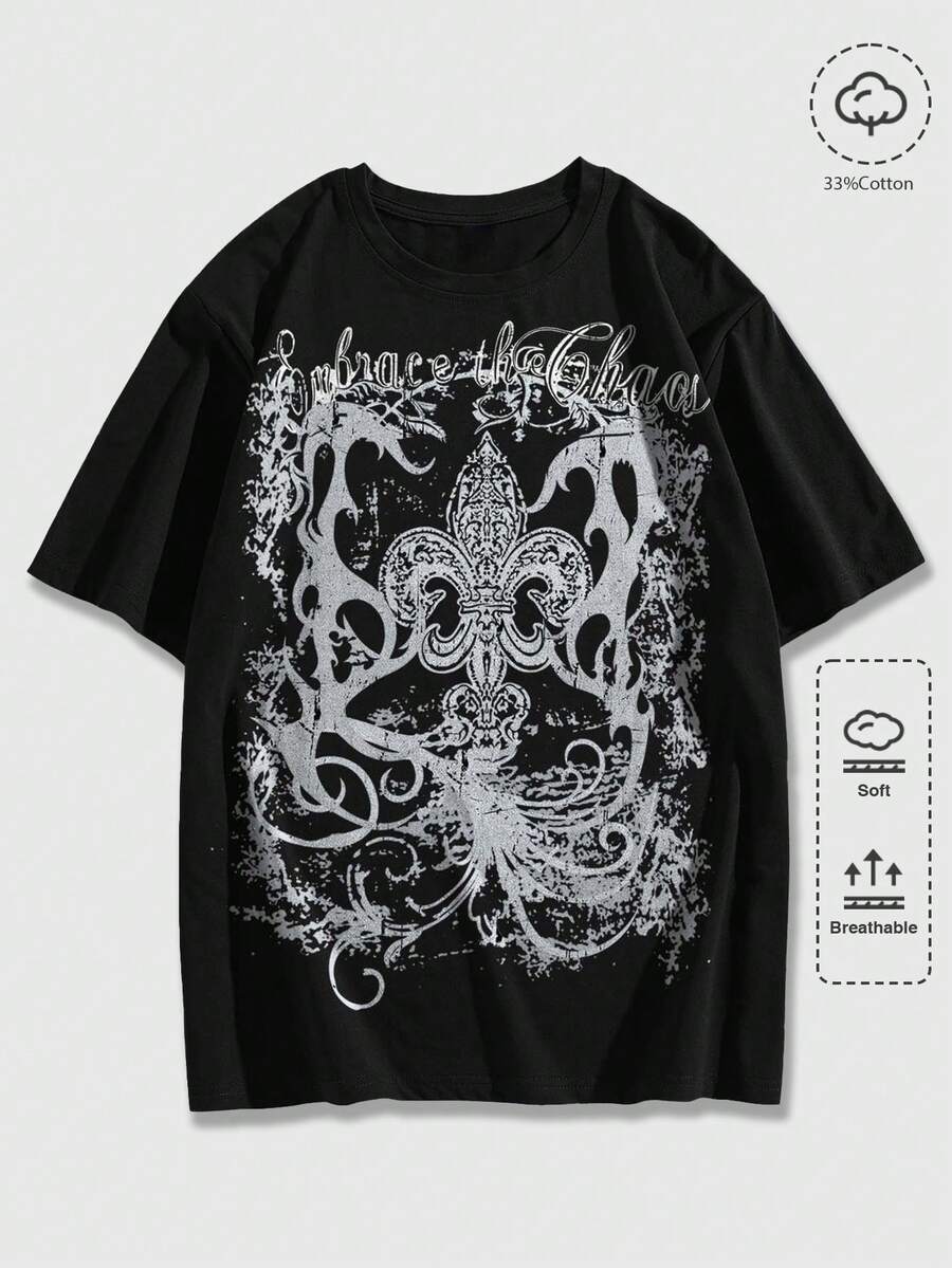 Goth Herren Lässig bedrucktes Rundhals Kurzarm T-Shirt, Sommer