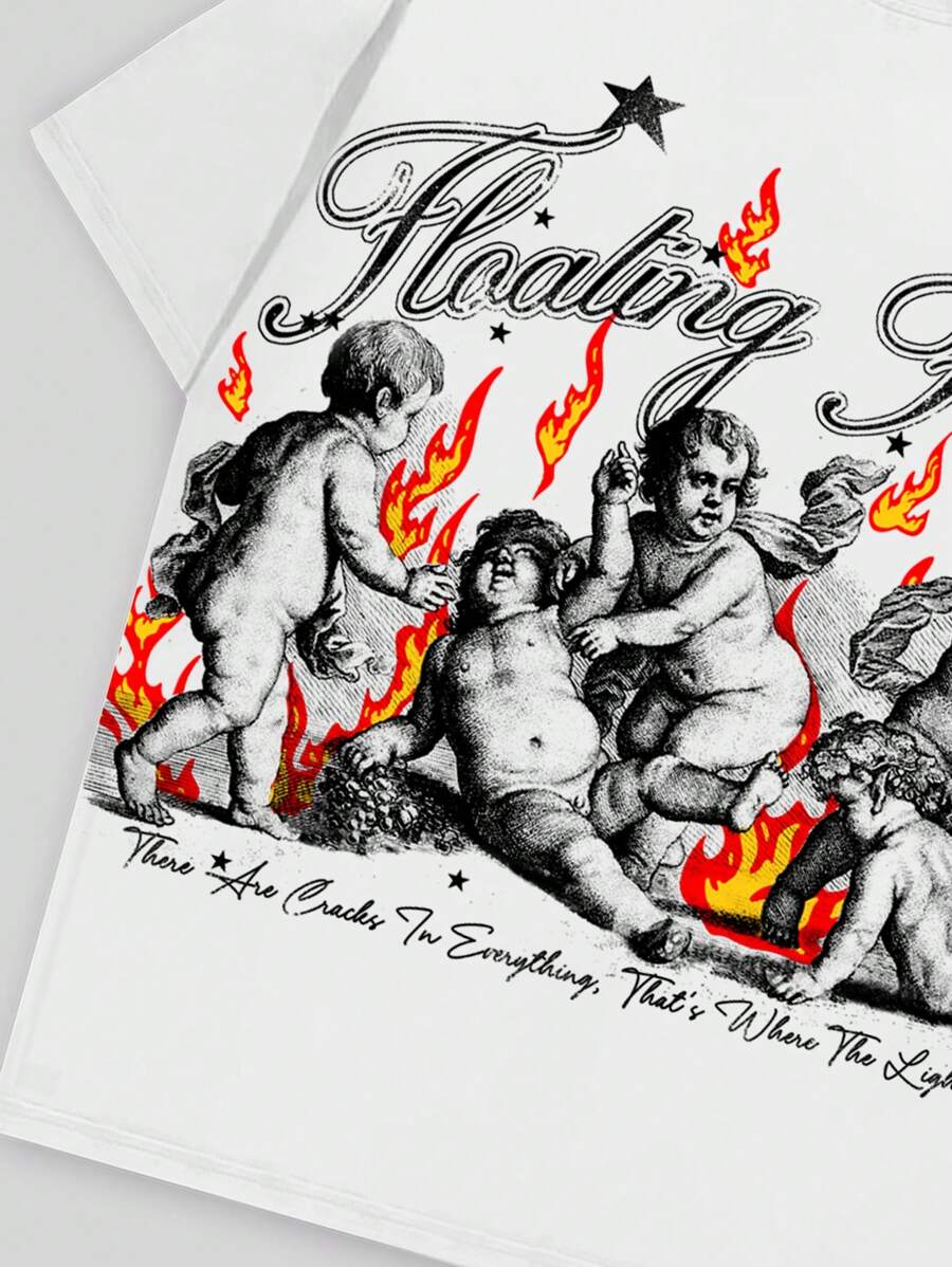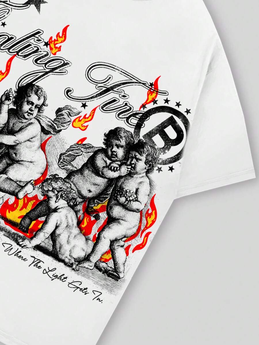 Street Life Herren Lässig Slogan & kleiner Engel Muster Rundhals Kurzarm T-Shirt
