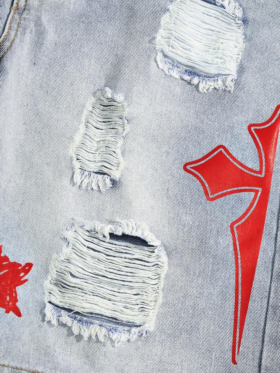 Goth Herren Denim Shorts mit Kreuz Muster und Abnutzungserscheinungen, geeignet für den täglichen Gebrauch im Frühling und Sommer, Schule