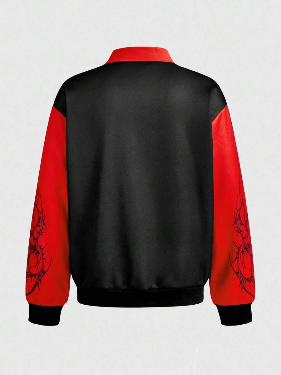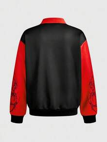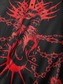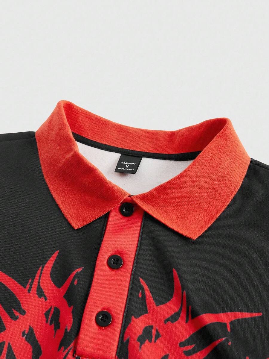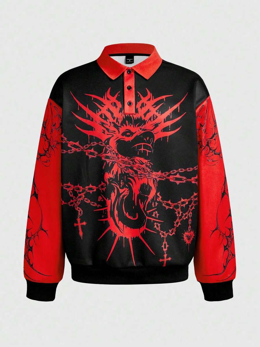 Goth Herren Dunkel Ketten Teufel Muster Polokragen Langarm Lässig T-Shirt