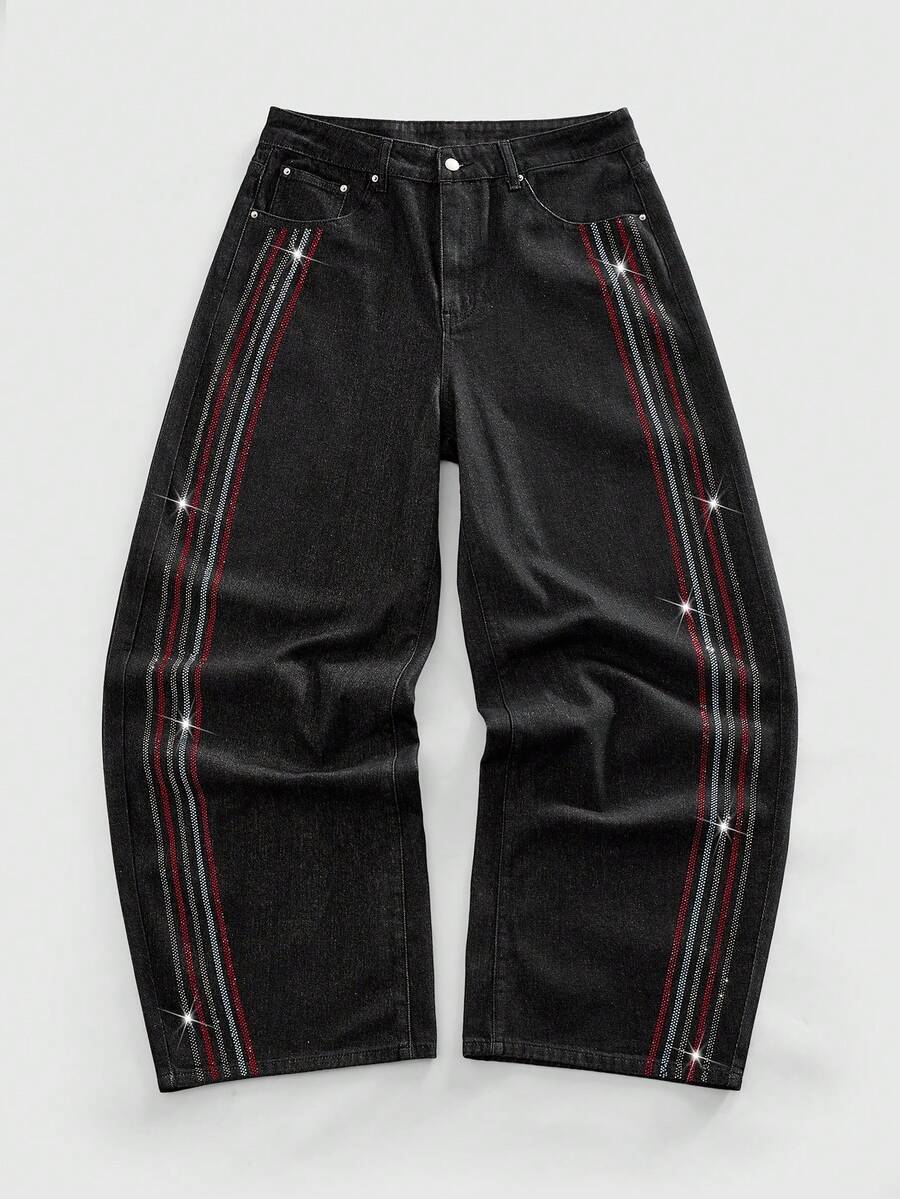 Goth Herren Mode Lässig Hose mit Taschen, vielseitiger Strass gebogenes Messer Design