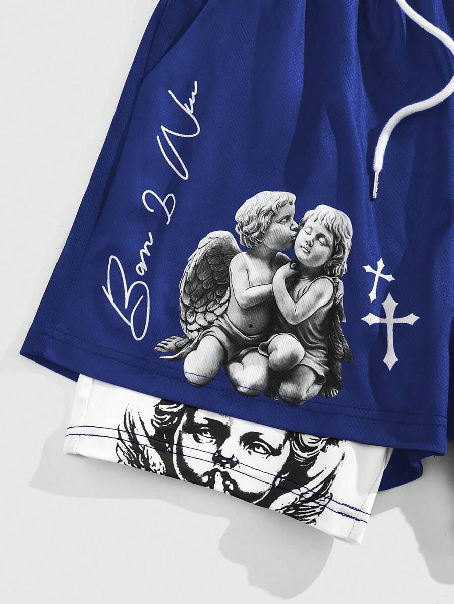 Goth Herren Sport-Shorts mit Buchstabendruck, Kordel-Taille, zweifache Lage