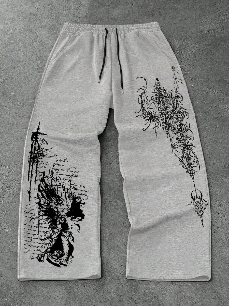 Goth Herren Loose Bequeme Lässig Gerade Bein Jogginghose, Grau