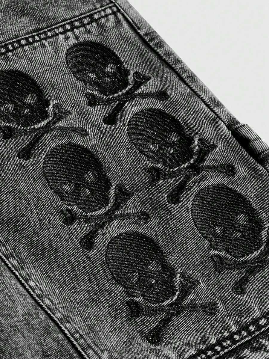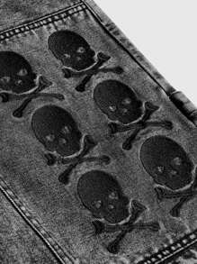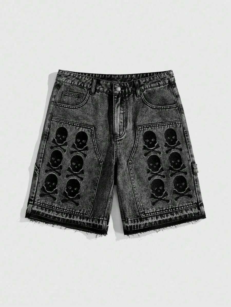 Goth Herren Skeleton Stickerei Lässig Jeans Shorts, Halloween