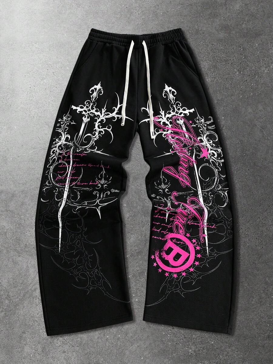 Goth Herren Streetwear Mode Jogginghose mit Tunnelzug und Taschen mit Aufdruck
