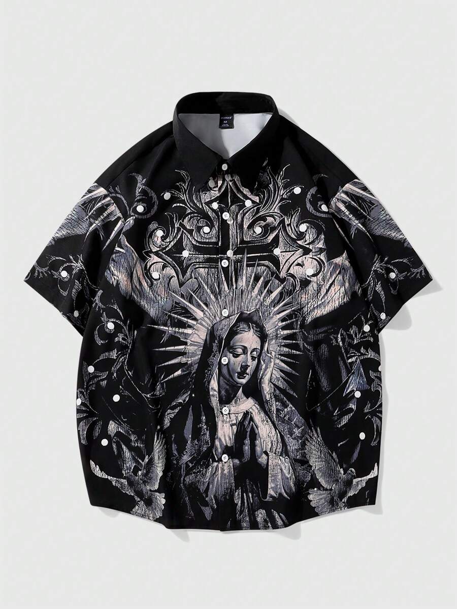 Goth Herren Sommer Kurzarm Lässig Hemd mit Kreuz Muster für Halloween, Schule
