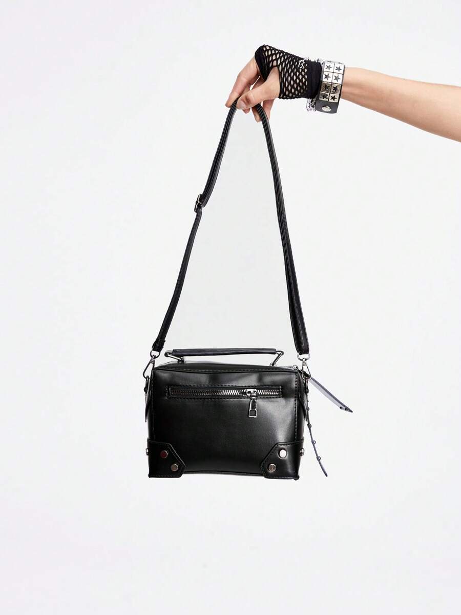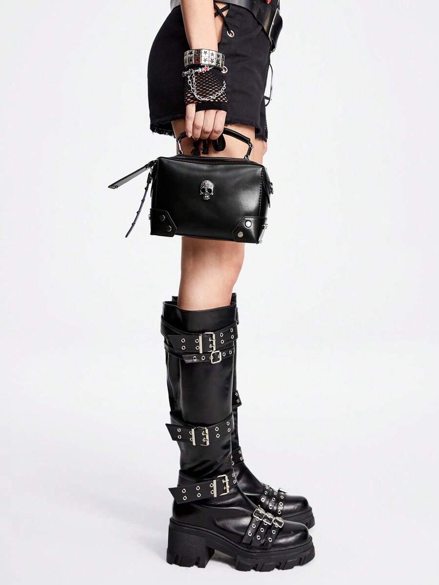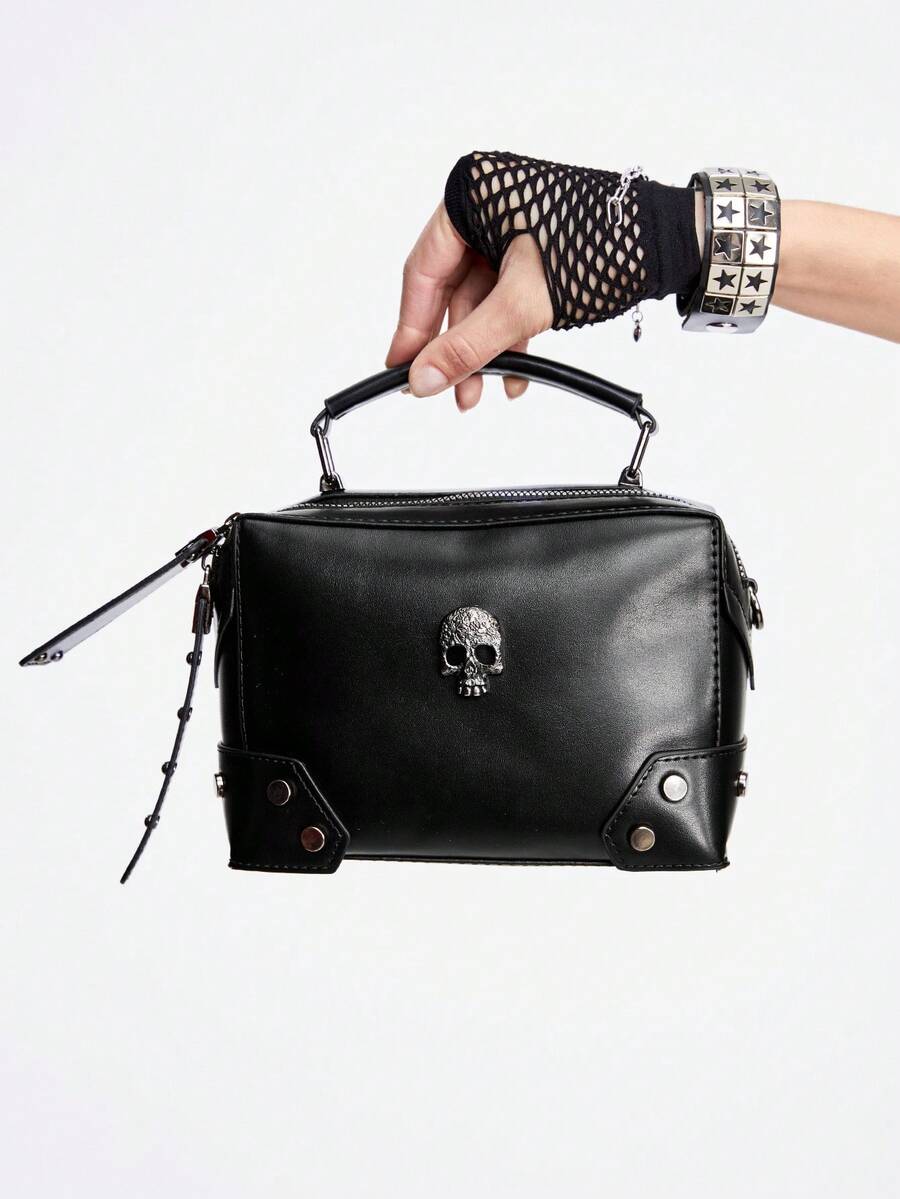 Goth Neue coole Tasche für Frauen, Motor Skull Schultertasche für dunkle Mädchen, kleine quadratische Tasche
