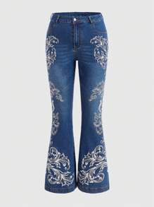 Goth Große Größe Schlaghose mit Blume Muster,