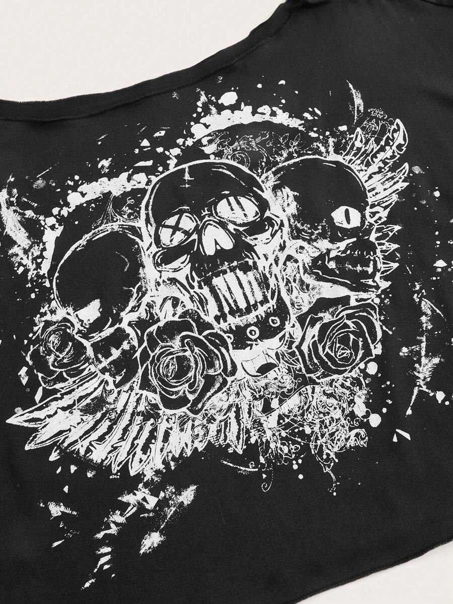 Goth Große Größen Damen Totenkopf bedrucktes Off-Shoulder T-Shirt, Schule, Sommer