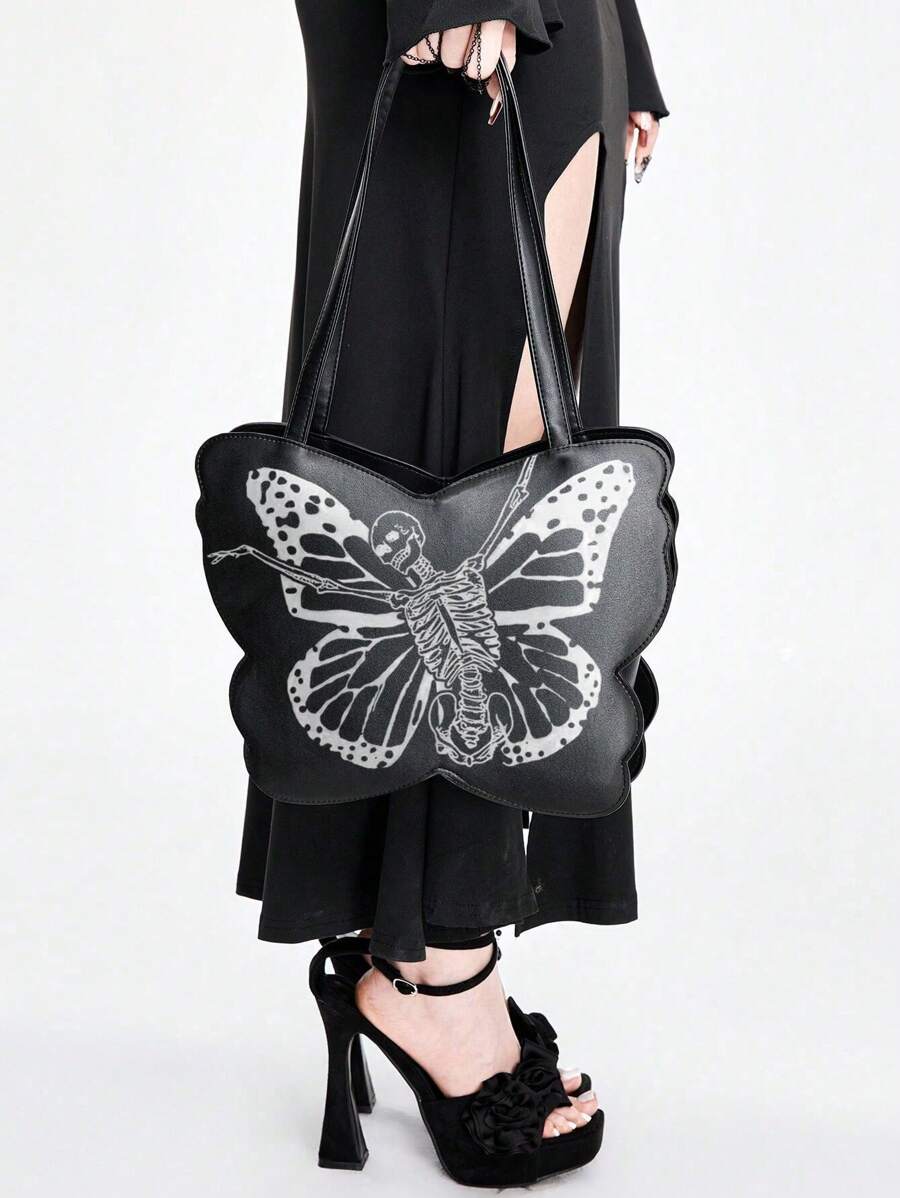 Punk Gothic Dunkel Alien Schmetterling Schwarz Handtasche, tragbar an der Schulter, Valentinstag