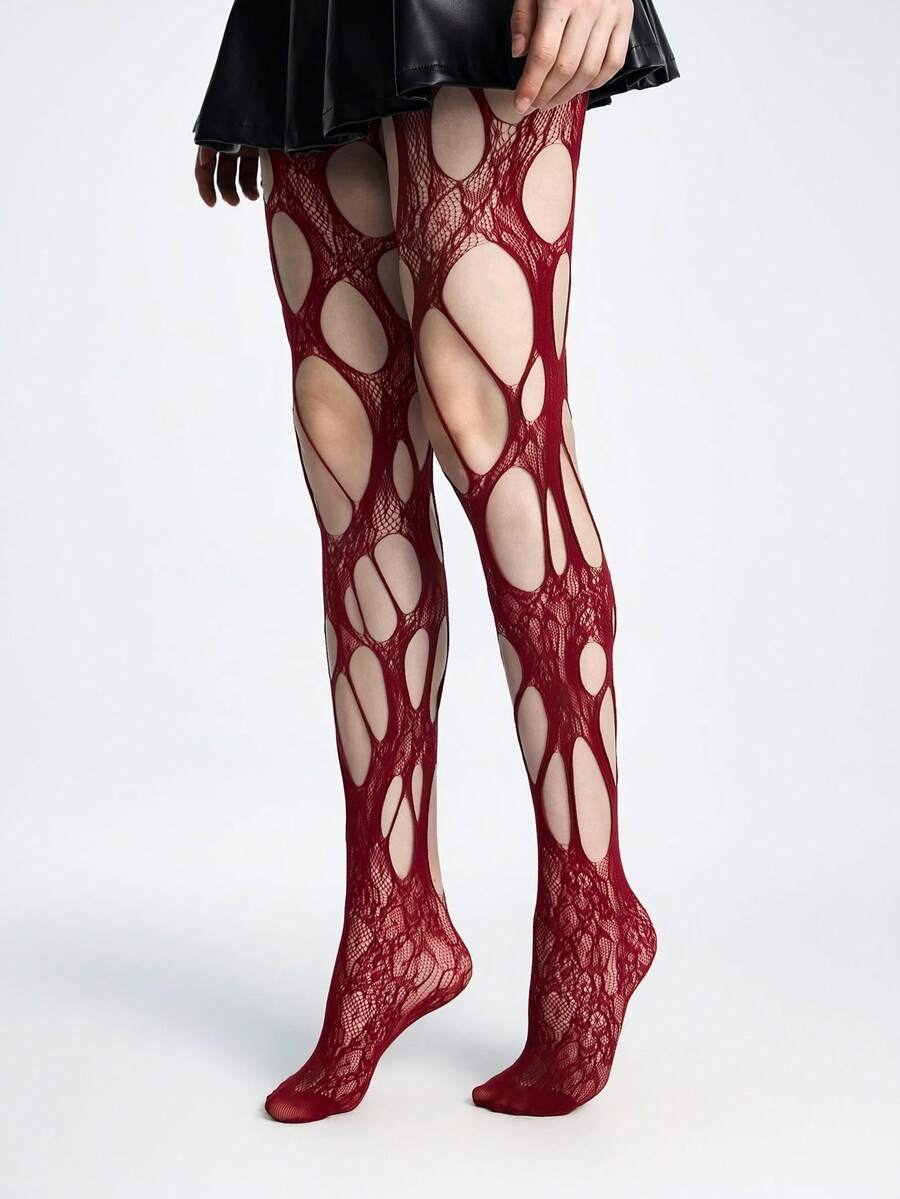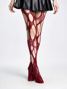Goth Sexy Damen Zerrissene Fischnetz Schwarze Strumpfhose