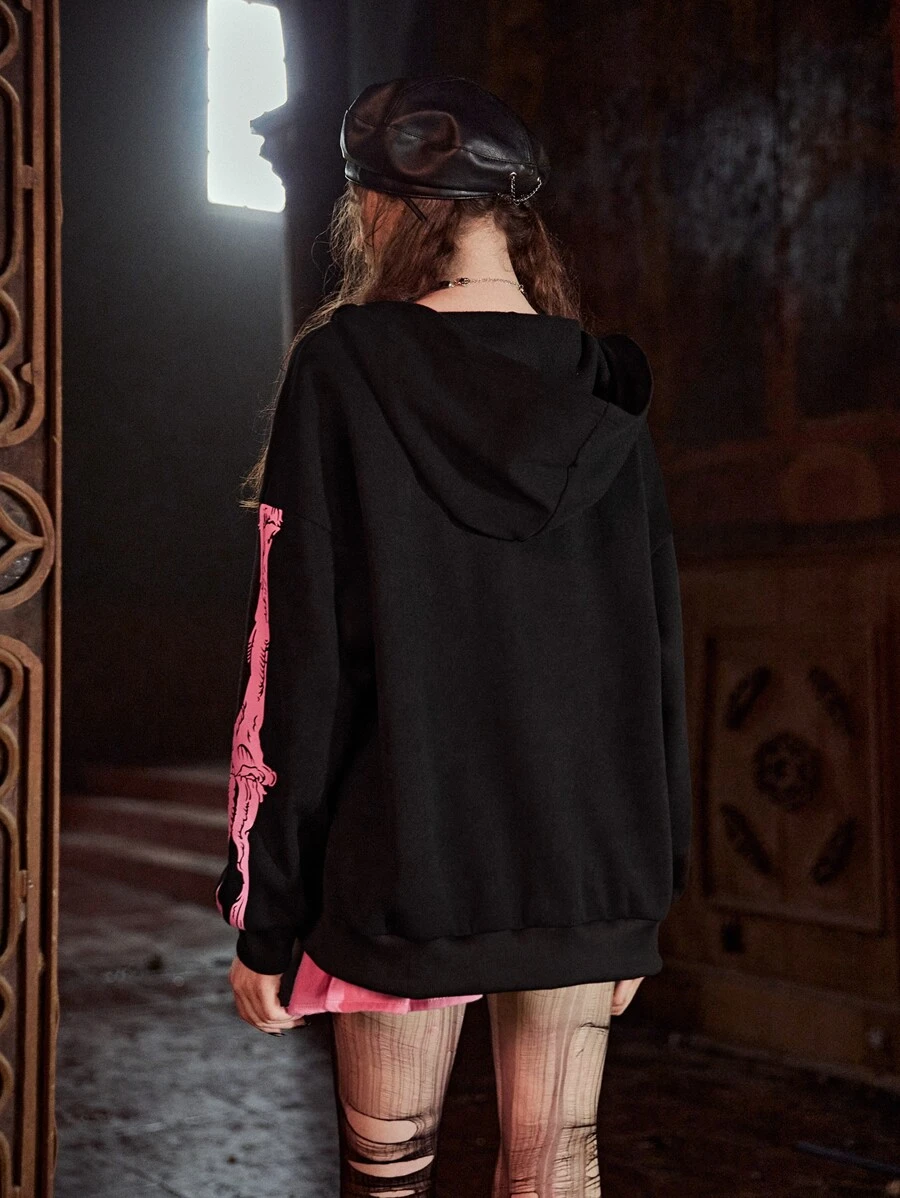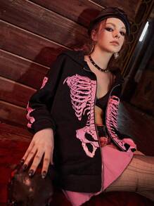 Goth Kapuzenpullover mit Reißverschluss Skelett Grafik