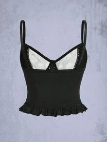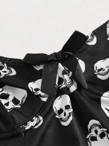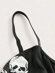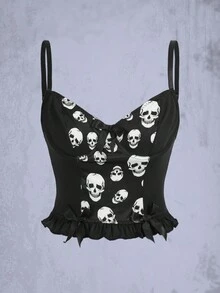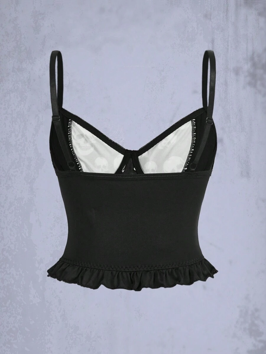 Goth Cami Top mit Schädel Muster, Rüschenbesatz,