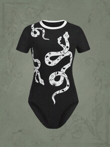Goth Body mit Schlange Muster, Kontrastsaum,