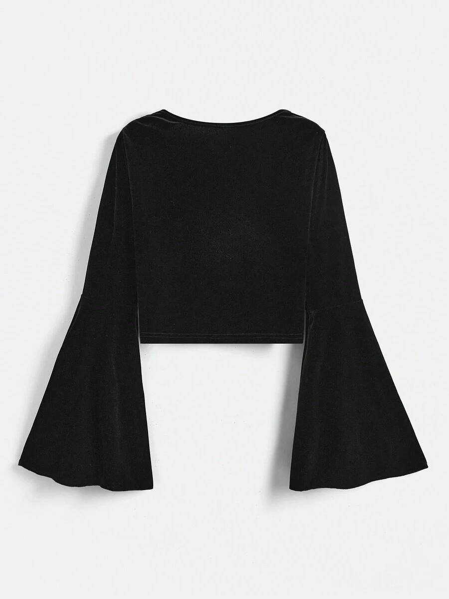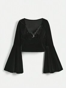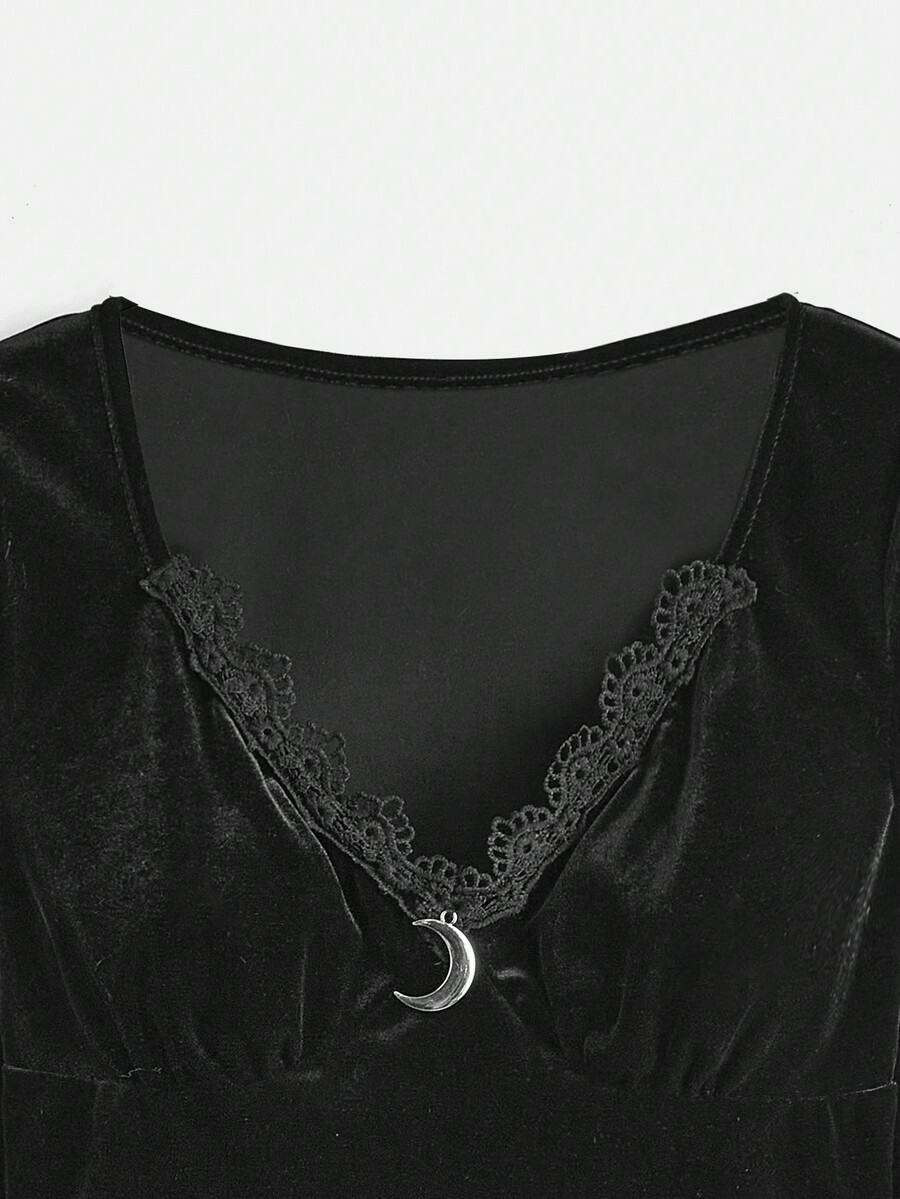 Goth Einfarbig T-Shirt mit Kontrast Spitzen