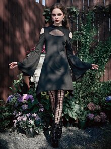 Goth Kleid mit Ausschnitt, asymmetrischem Saum