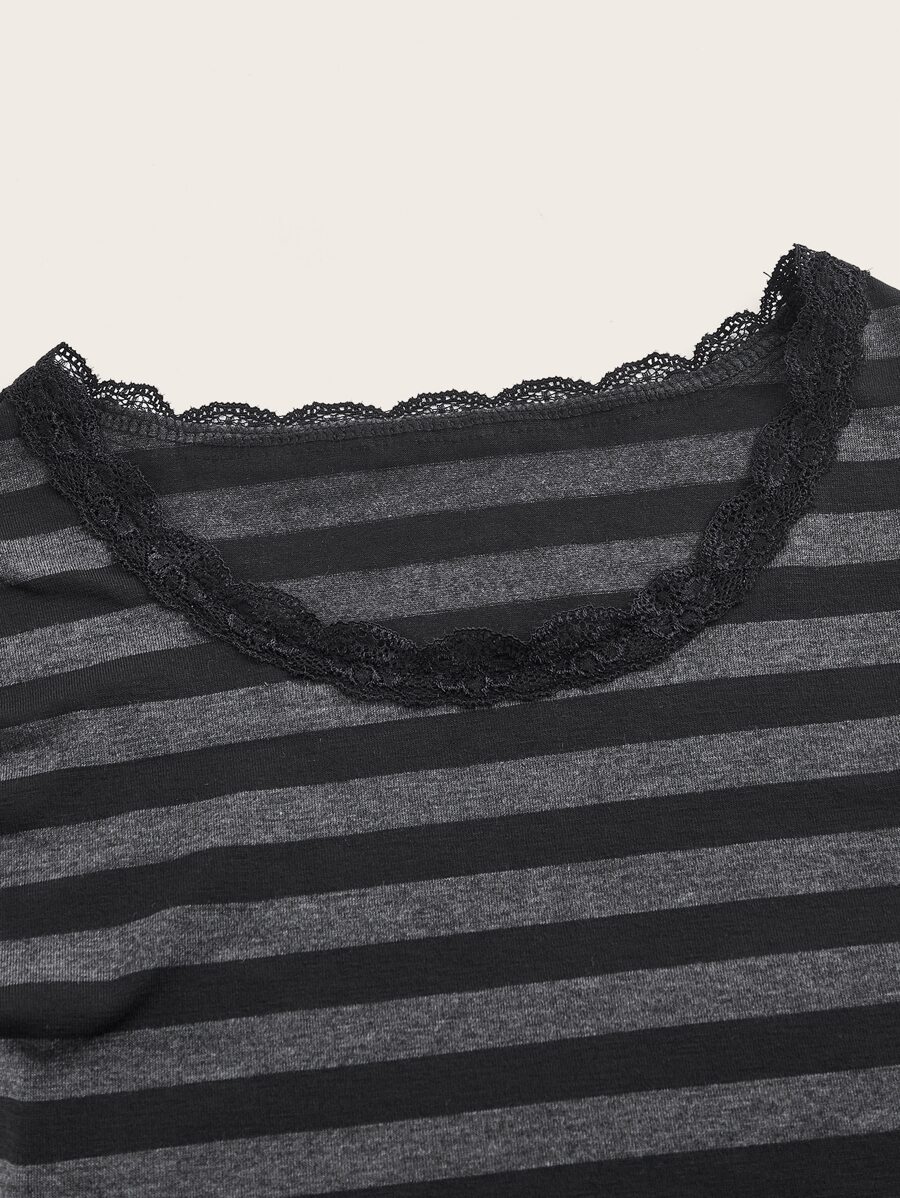 Goth Durchsichtige Spitze Gestreift Lässig Damen T-Shirts
