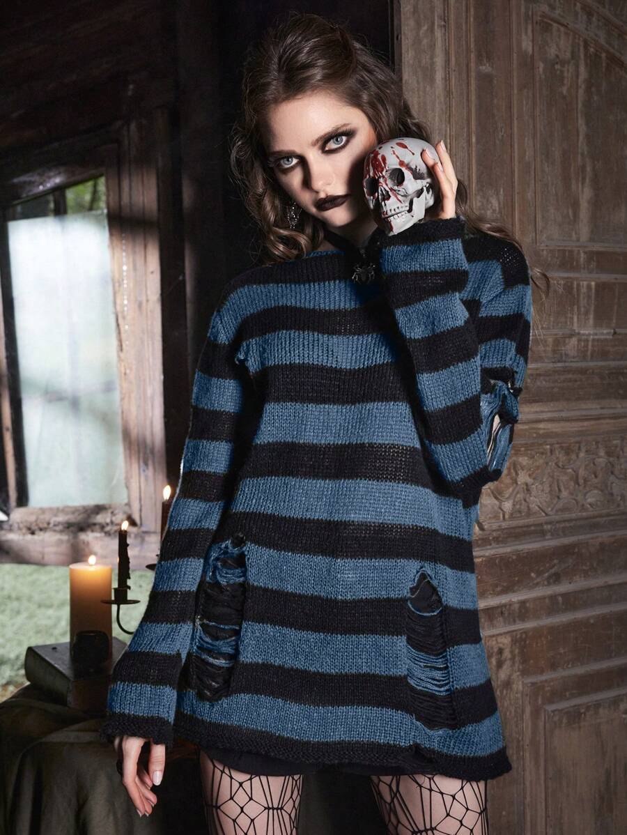 Goth Zerrissener Pullover mit Streifenmuster
