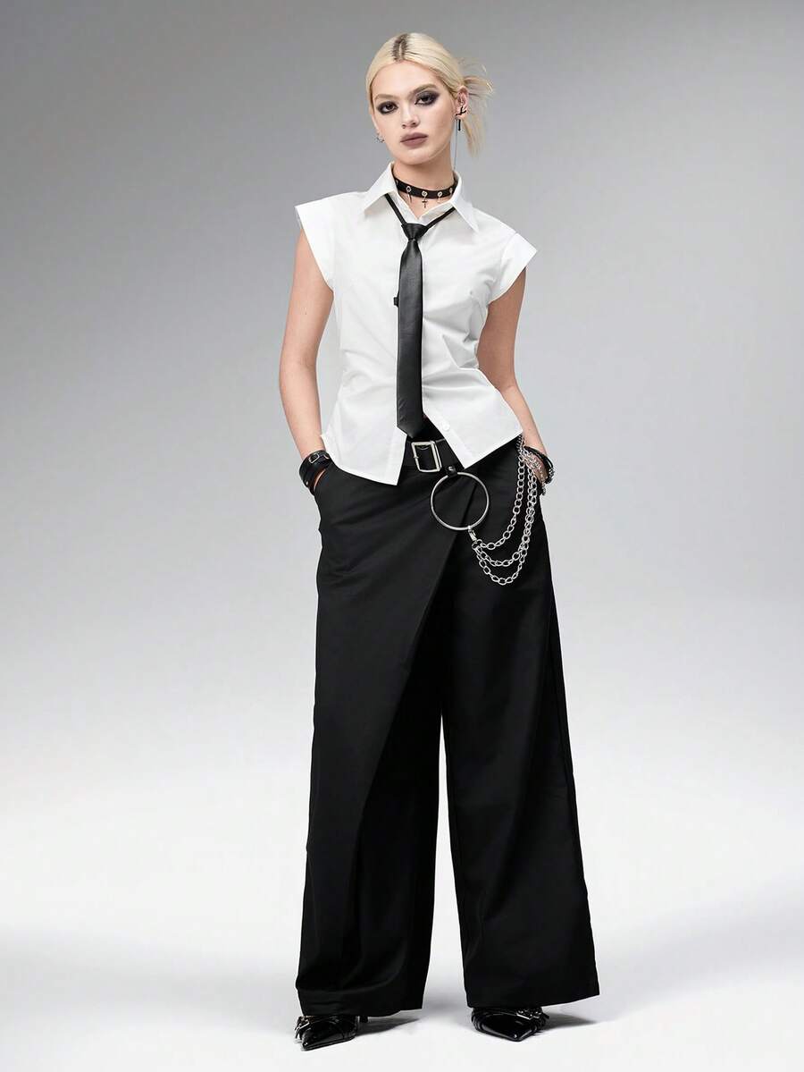 Gothic-Stil weiße figurbetonende Bluse mit Krawatte für Damen, Business-Outfit