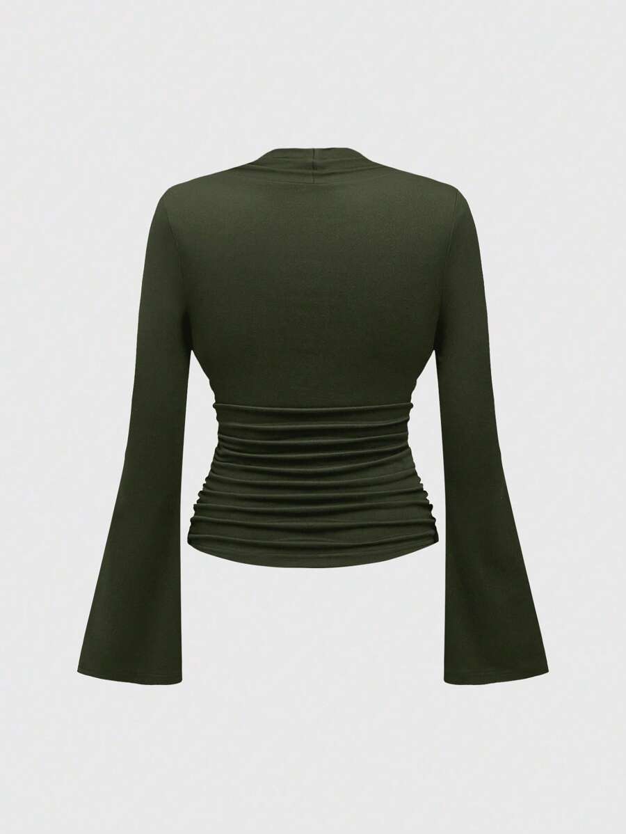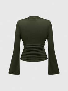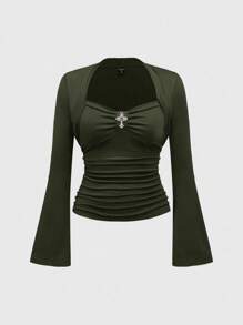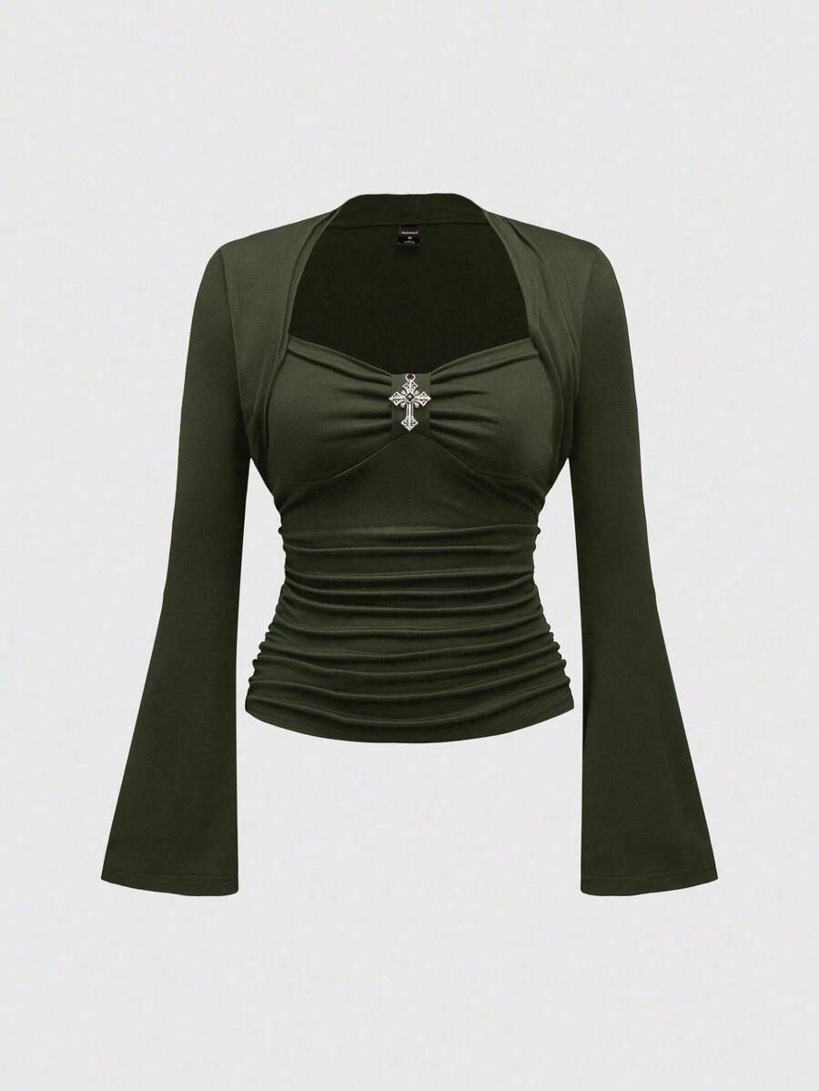 Vintage Palast Goth Kreuz Anhänger einfarbiges elastisches Langarm T-Shirt für Frauen