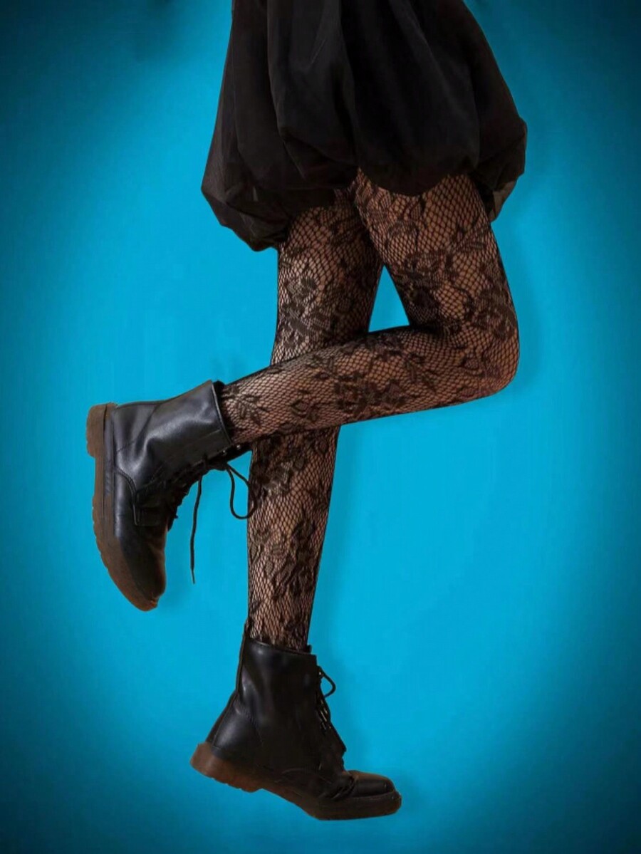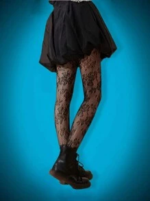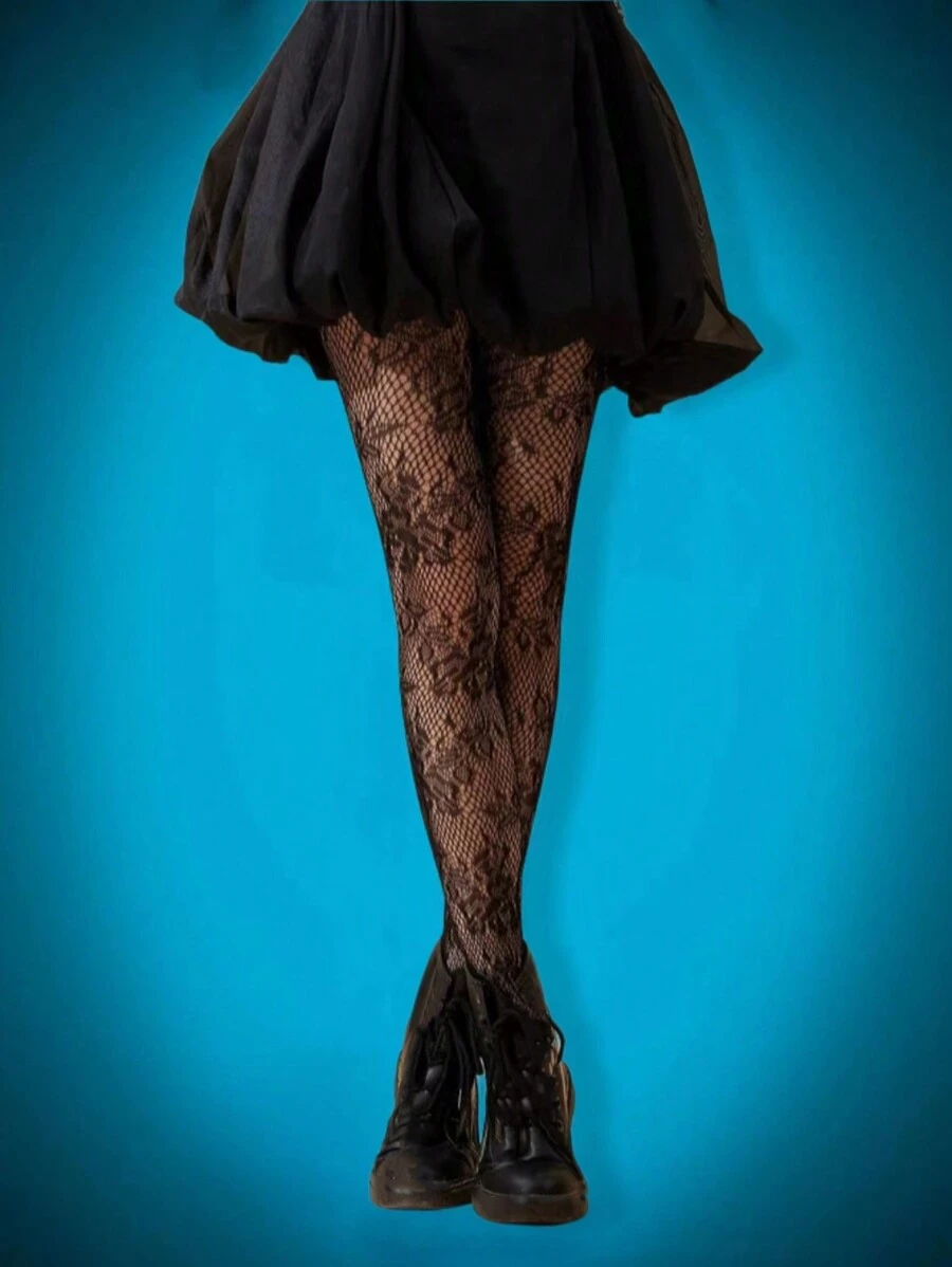 Goth Frauen Strumpfhosen mit Blume Design, Spitze