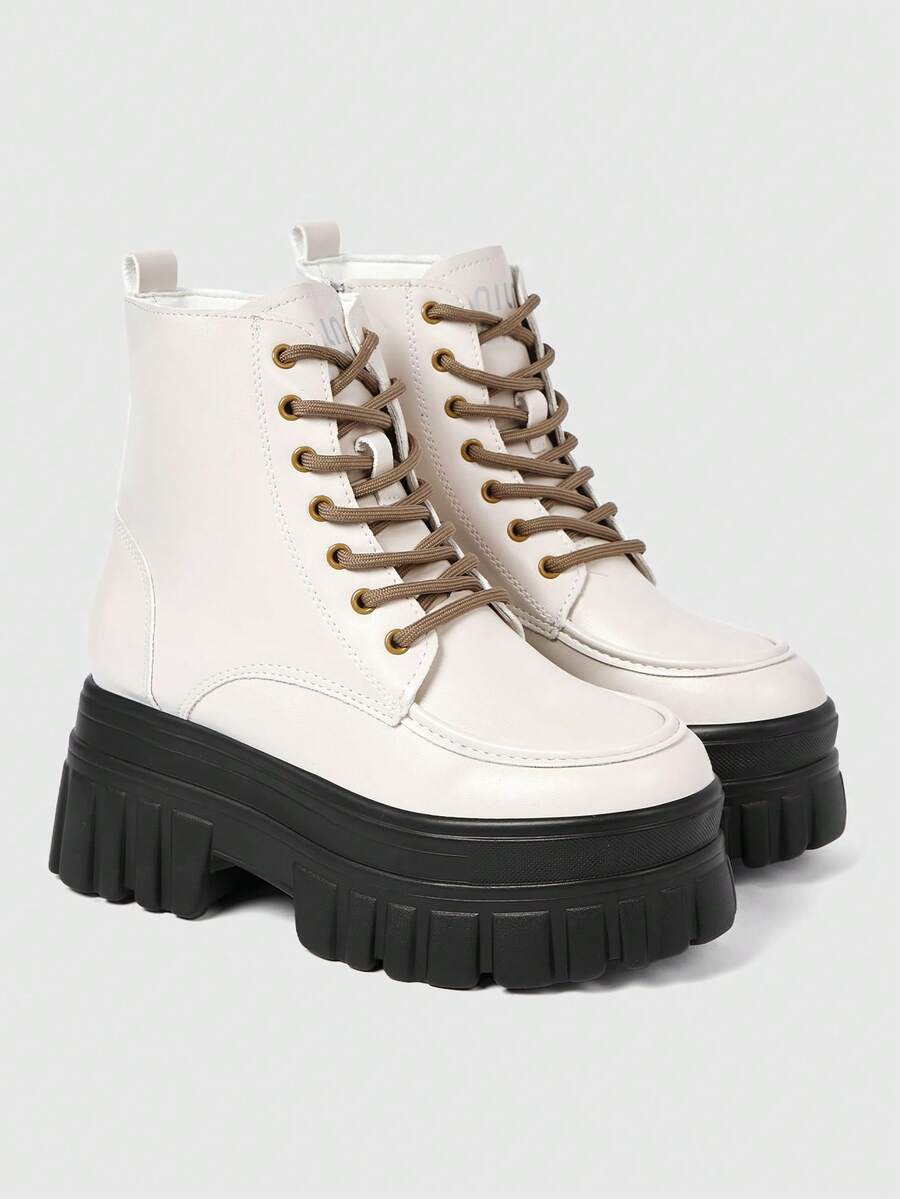 Goth Damen Sandaletten mit Absatz ~ 2026 Neue Mode Herbst und Winter Punk Stil PU Weiß Britischer Stil Reitstiefel mit innenliegender Absatzerhöhung, dünne kurze Stiefel