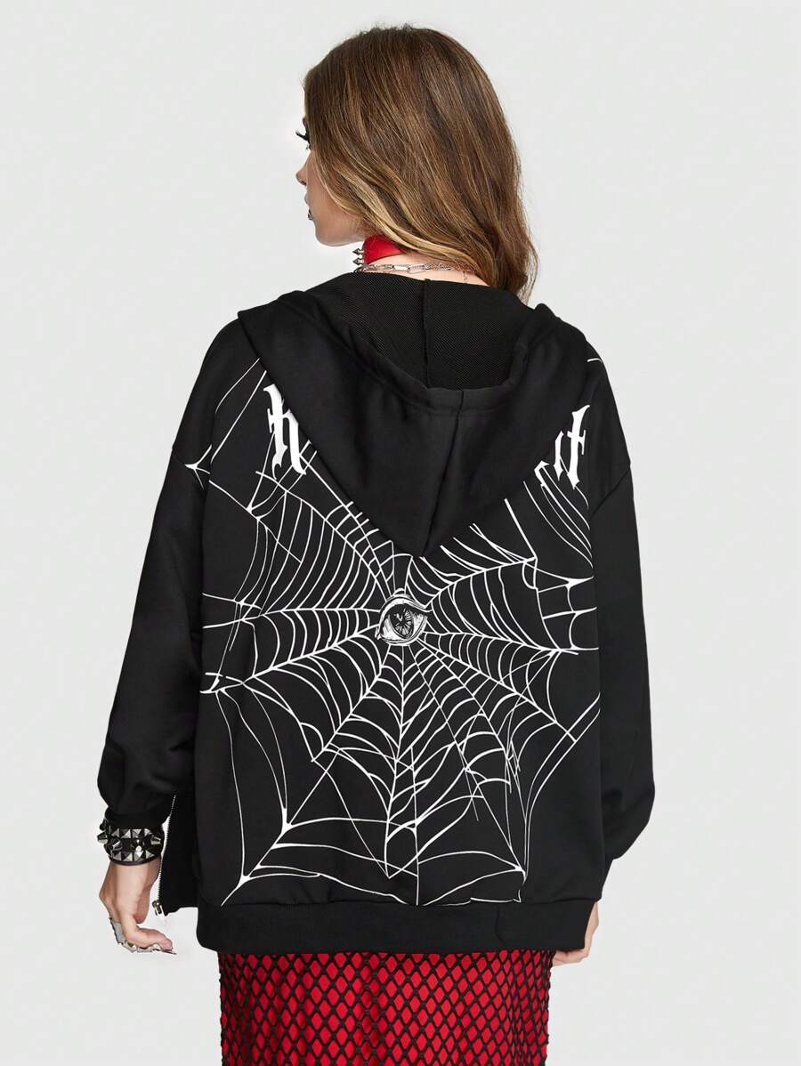 Goth Rock-stil Frauen Sweatshirt Mit Großem Spinnennetz Druck