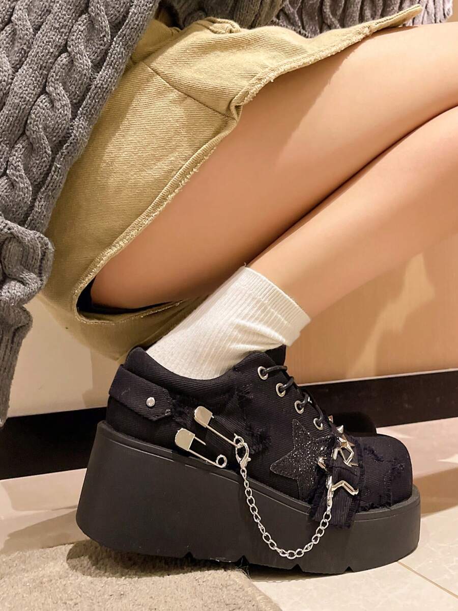 Goth Frauen Stern Dekor, Band, Keilschuhe , Punk Outdoor Schuhe