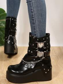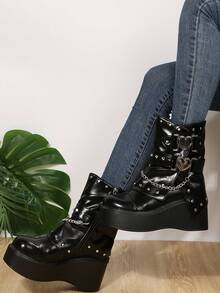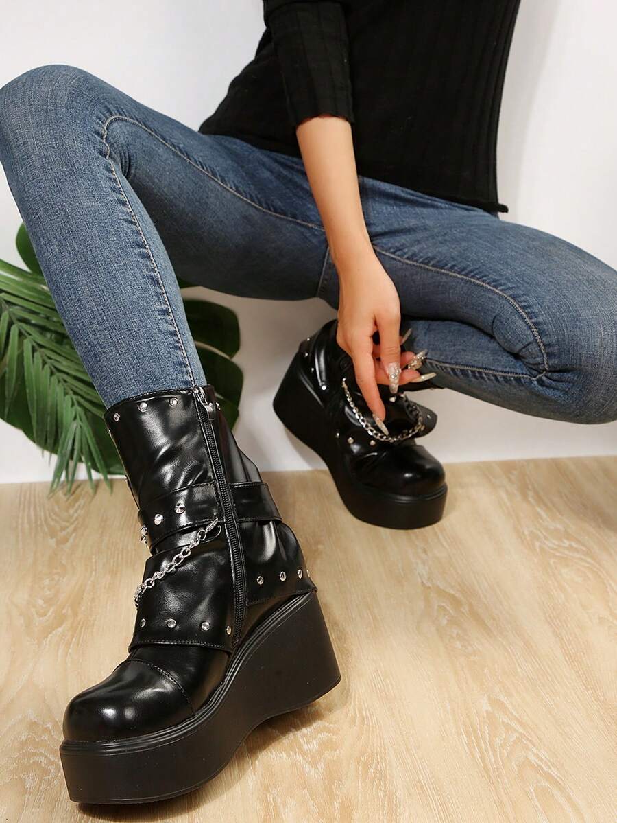 Goth Frauen Nieten, & Kette Dekor, seitlichem Reißverschluss, Stiefel , Punk Outdoor Stiefel