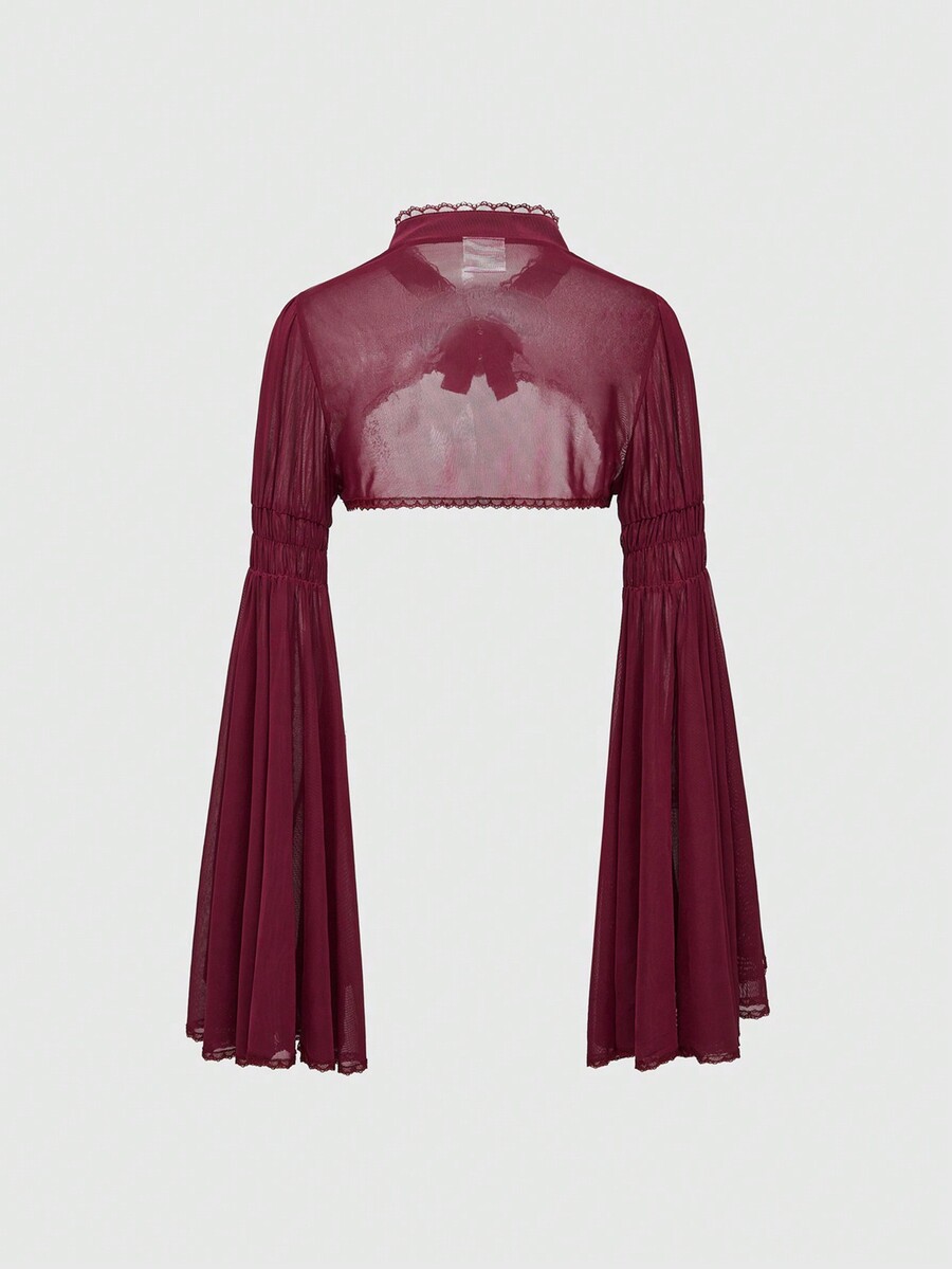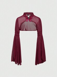 Goth Damen Bolero Top mit asymmetrischen Glockenärmeln, Schleife, Diamanten Anhänger und Netzpaneelen