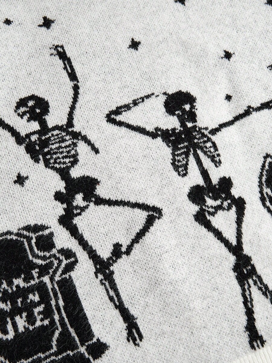 Goth Damen Rundhals Langarm Pullover mit Totenkopf Muster, einfach gestrickt, Lässig Alltag