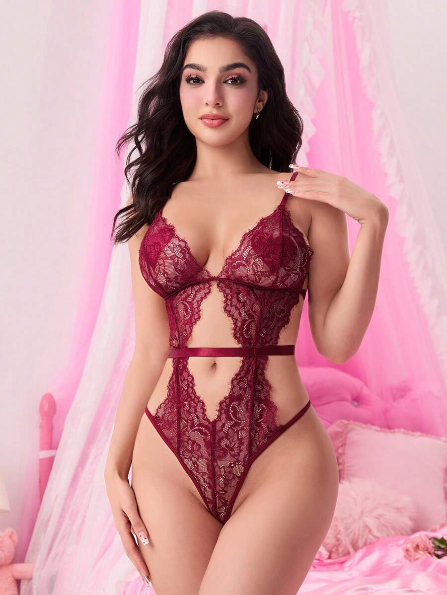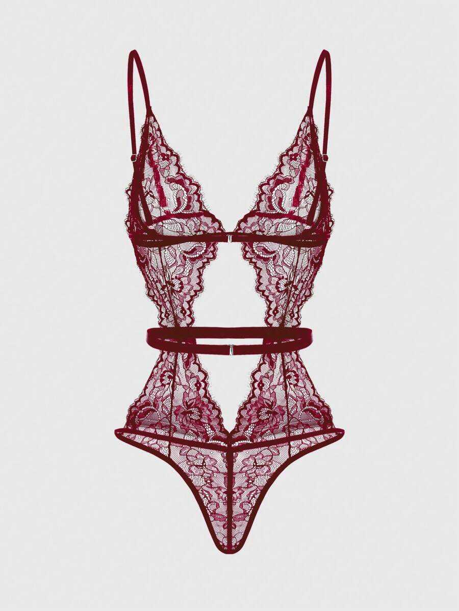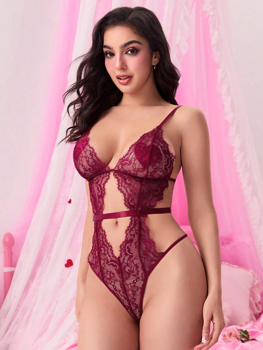 Goth Damen Bodysuit mit Lochmuster, sexy romantisch aus Spitze, ideal für den Valentinstag
