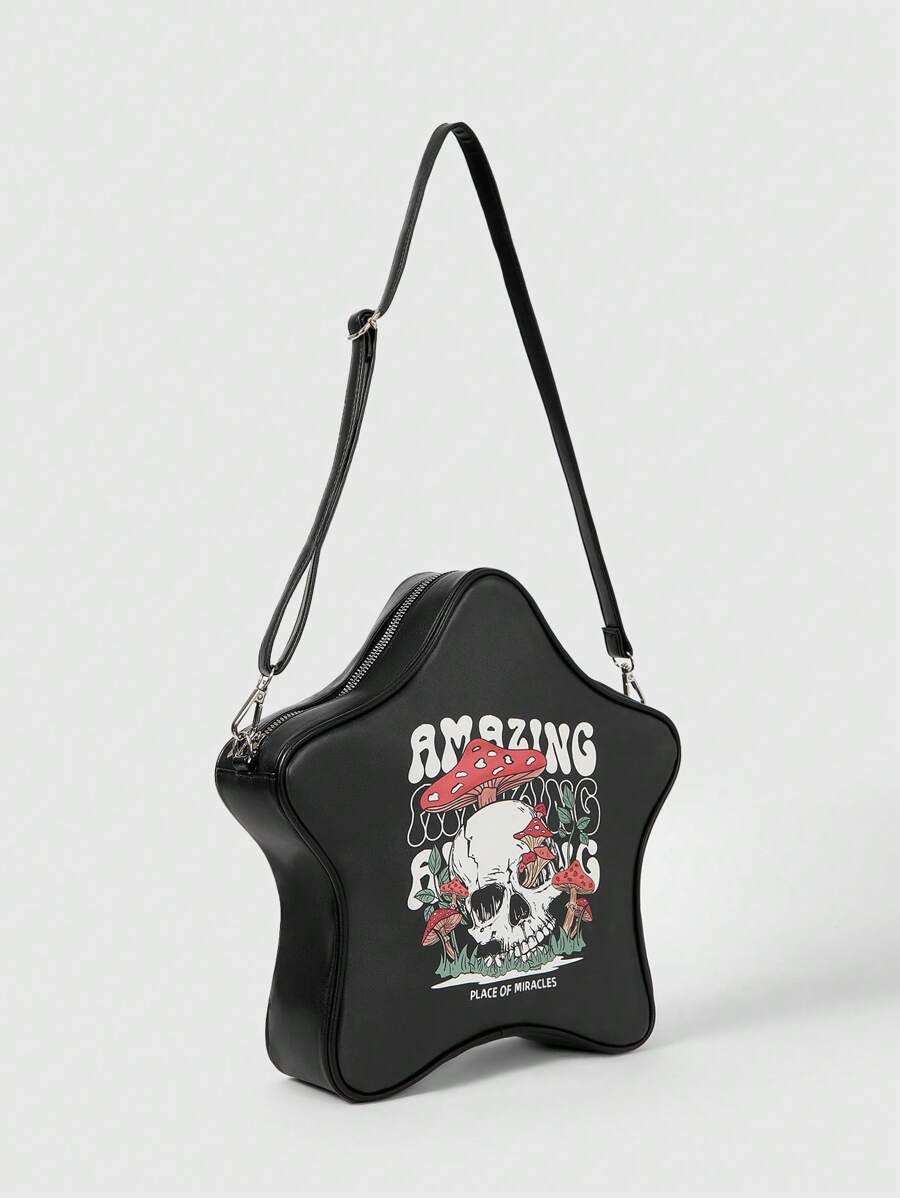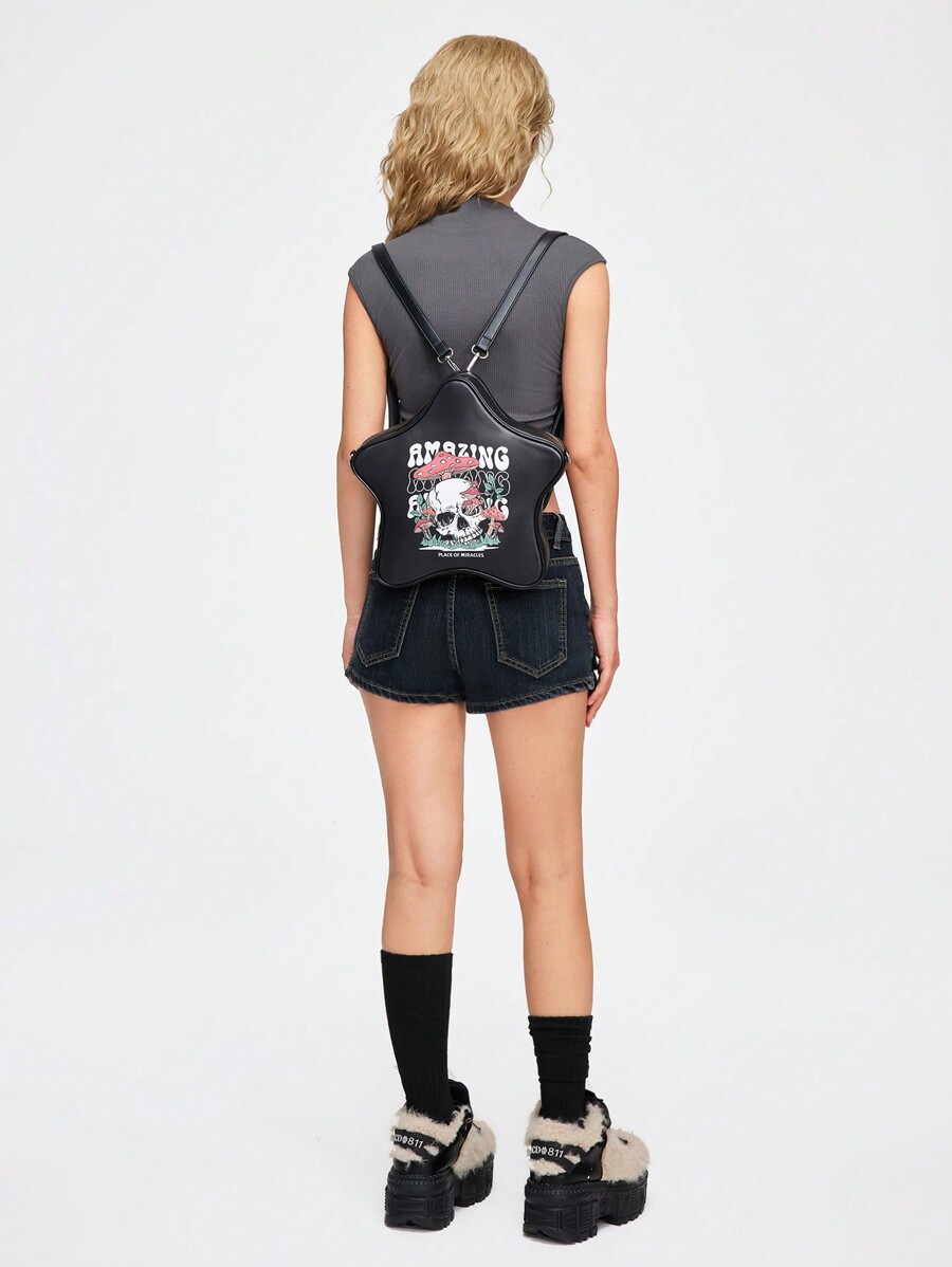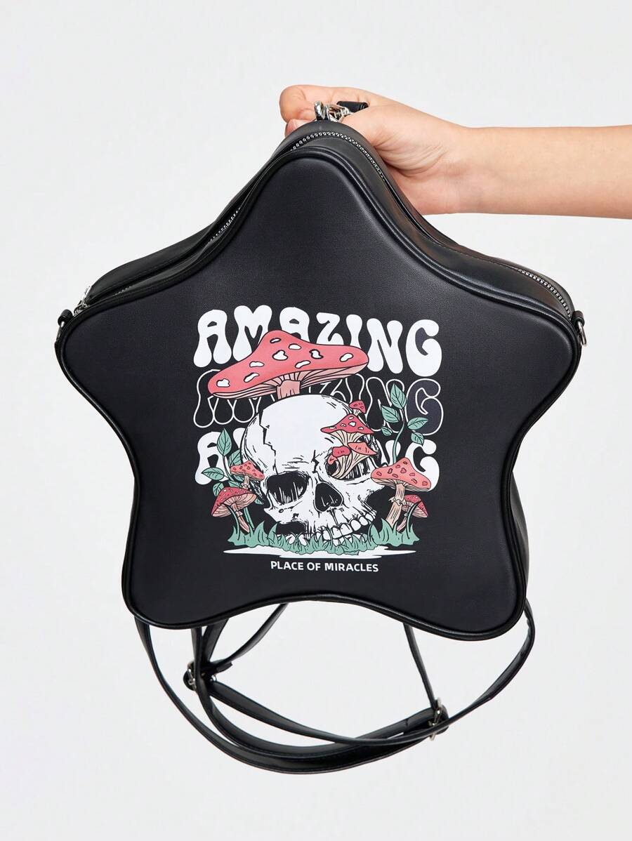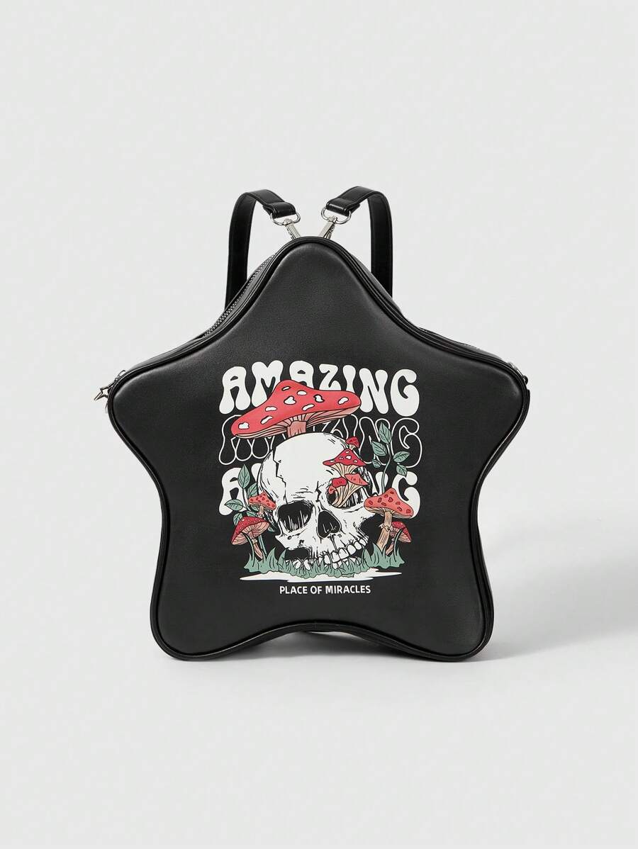Goth Modischer Rucksack Für Damen Mit Totenkopf Muster Und Sternen Design