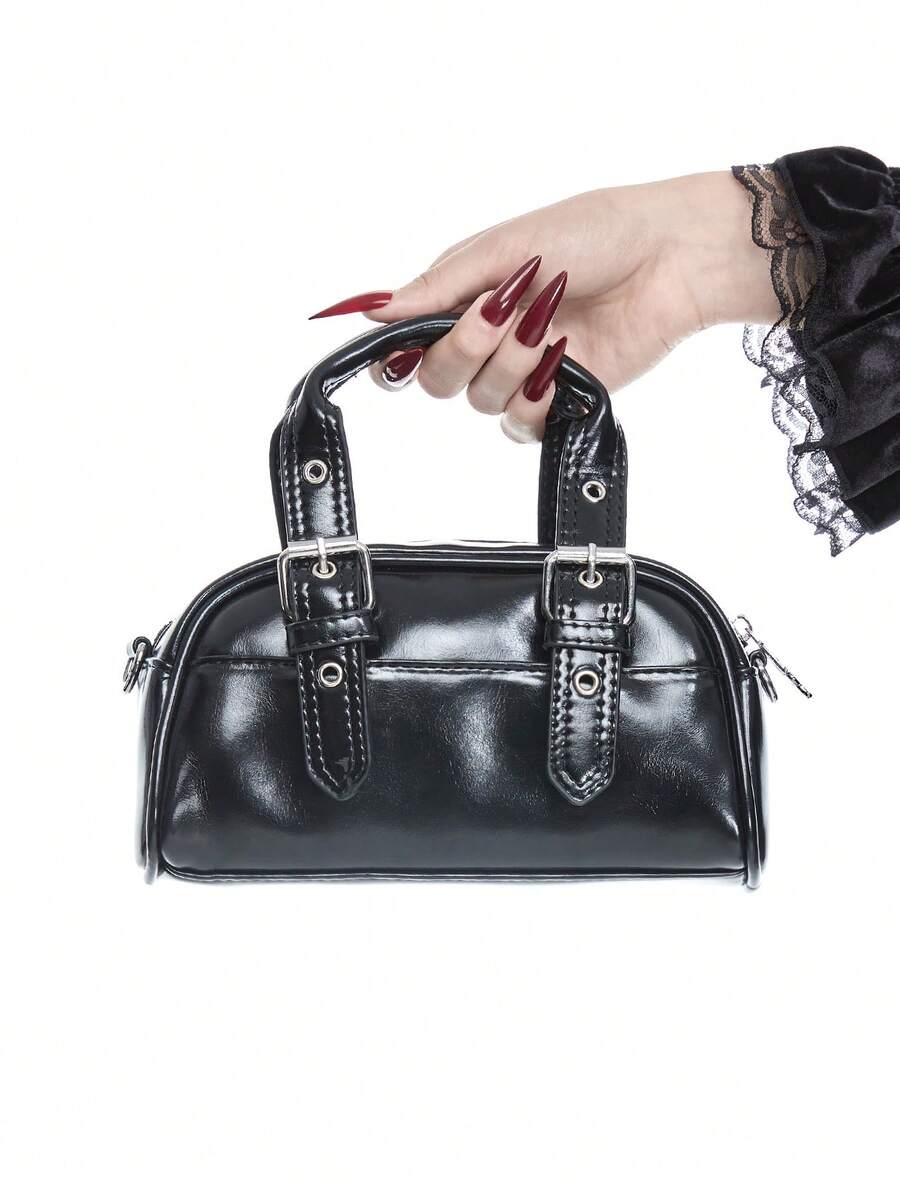 Damen Y2K Sexy Goth asymmetrische Schultertasche mit Totenkopf, Gothic Retro Punk Stil Handtasche Umhängetasche, Schwarze Tasche