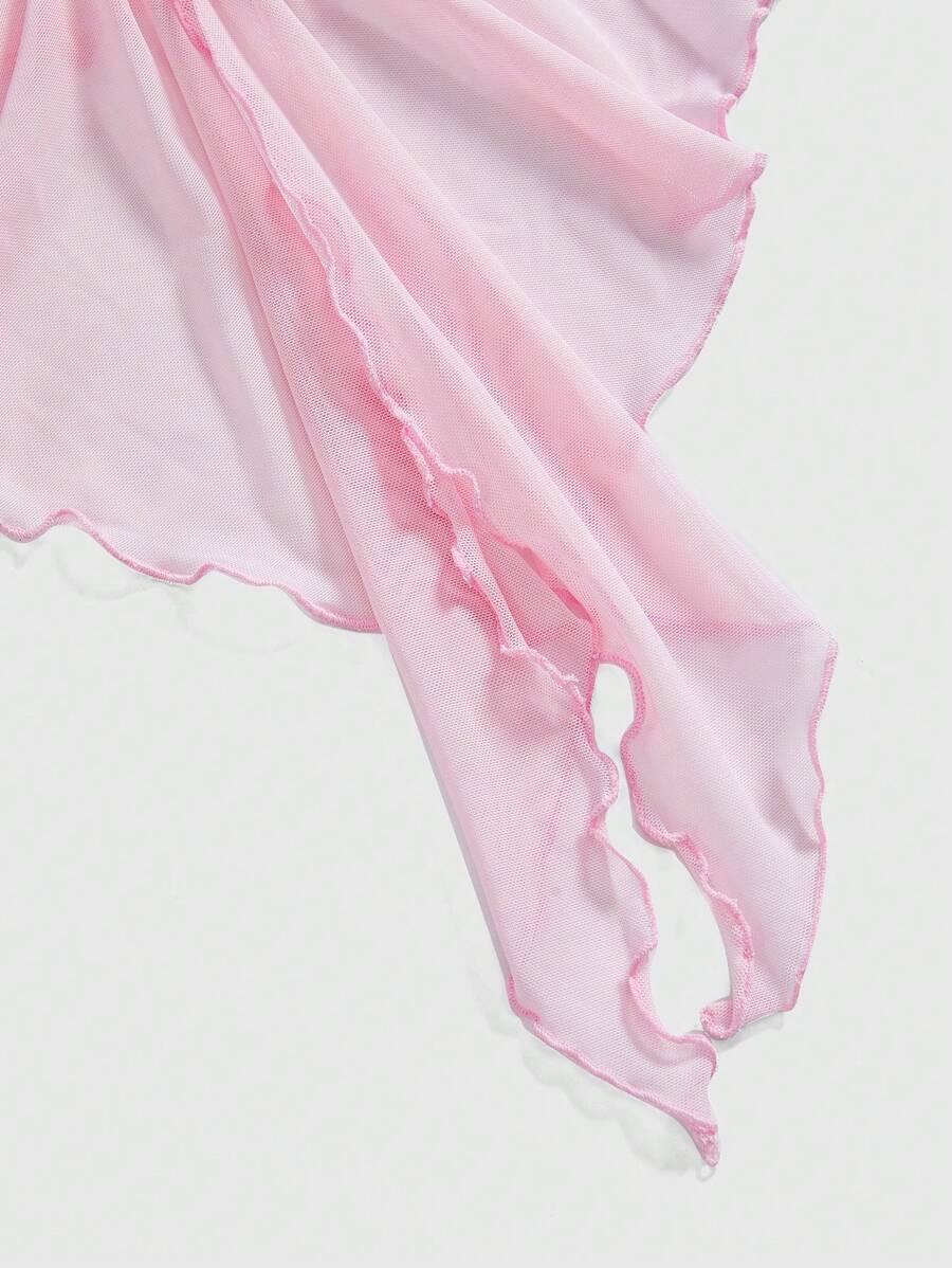 Goth Y2K sexy modernes seitlich gerafftes abnehmbares Mesh-Schal-Röhrenshirt für Frauen