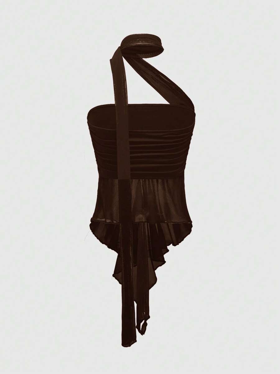 Goth Y2K sexy geraffter Mesh-Schal-Crop-Top mit abnehmbarer Seite für Frauen