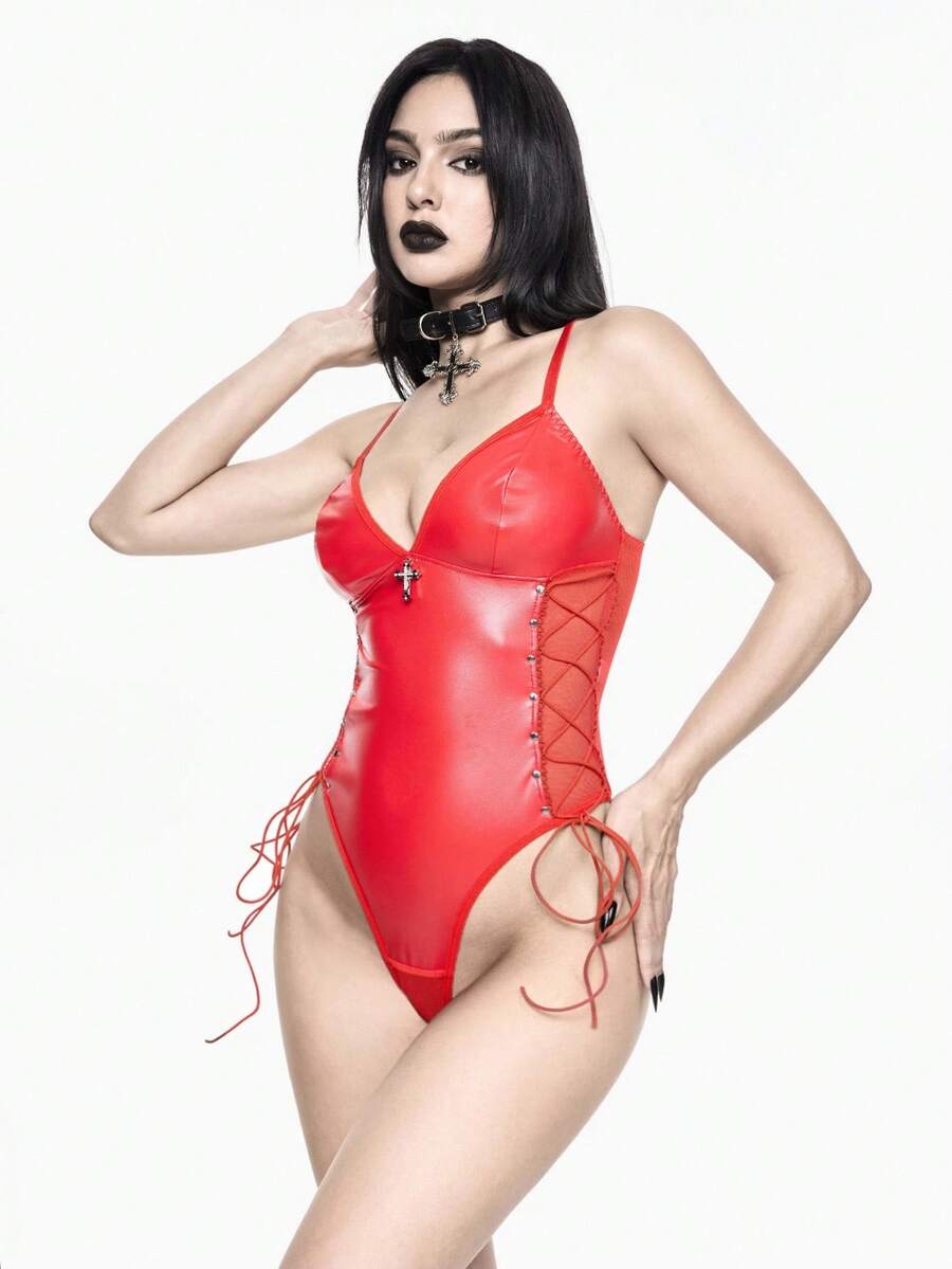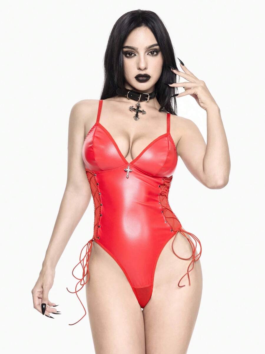 Gothic Kreuz Anhänger Sexy Bodysuit, Material aus PU