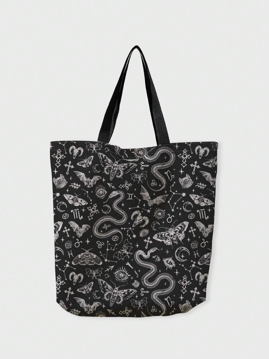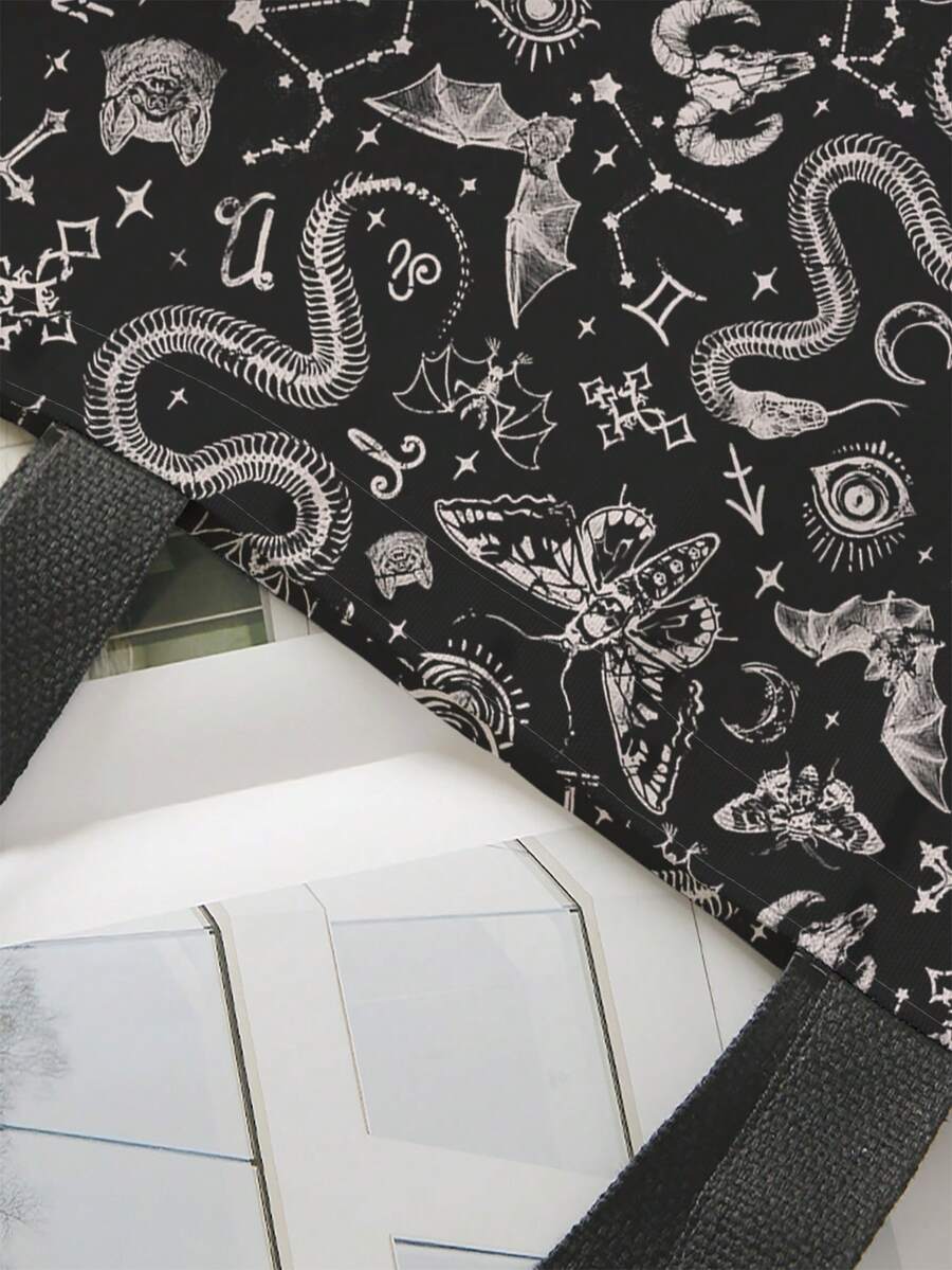 Goth Gotischer dunkler Motten- & Schlangen-beidseitiger Leinwand-Umhängetasche, Halloween