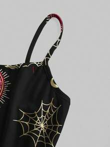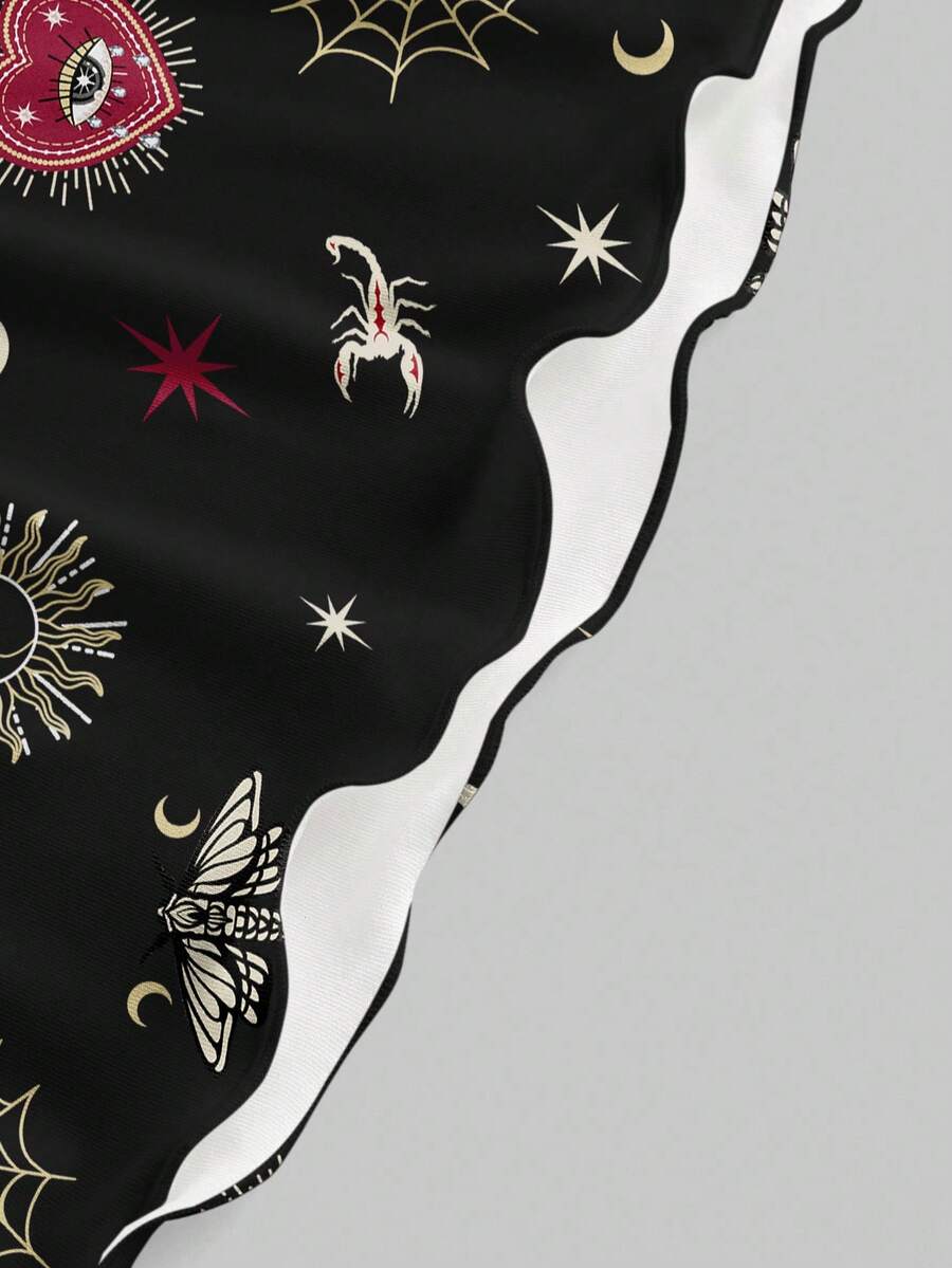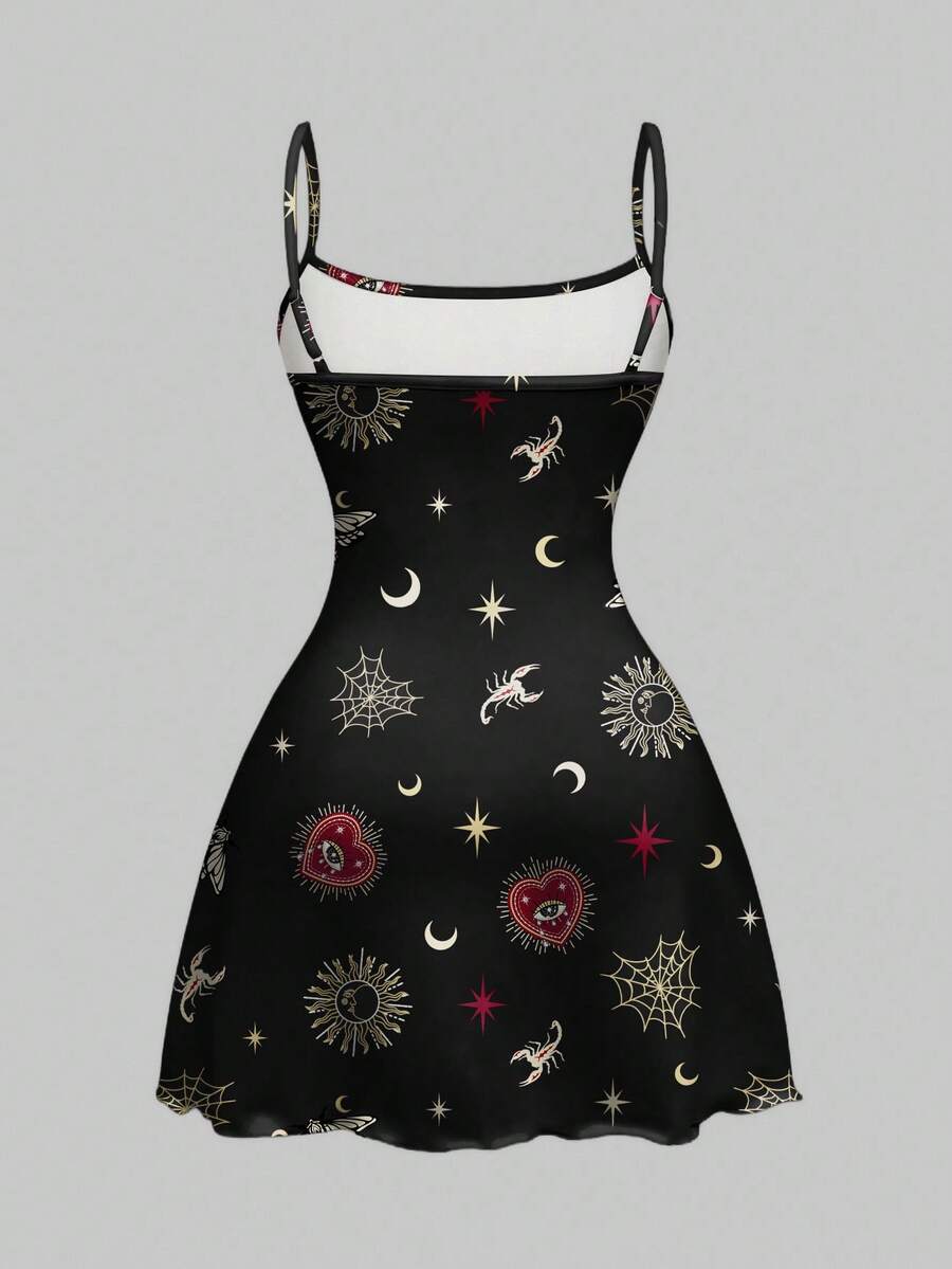 Goth Gotischer dunkler Palast Herz Edelstein Sonne & Mond Allover Muster Mini Kleid für Frauen