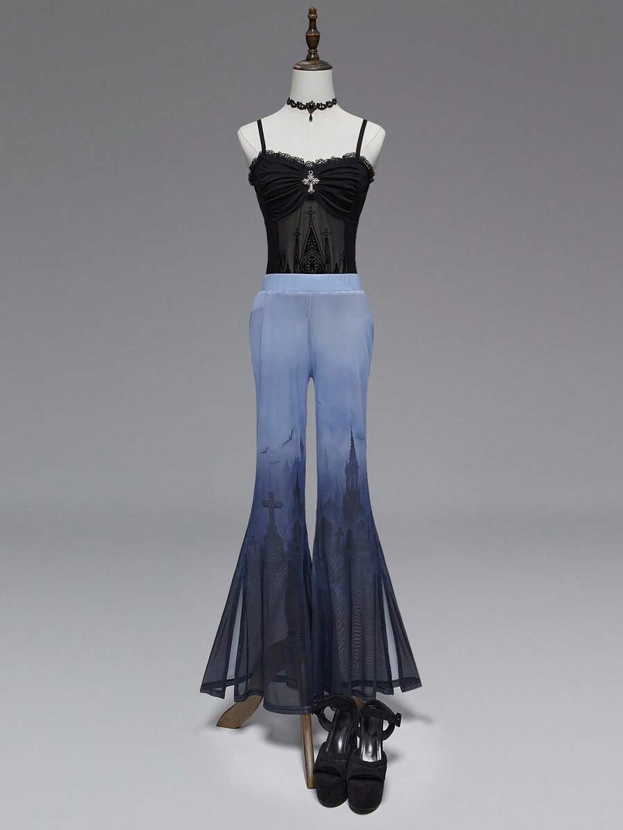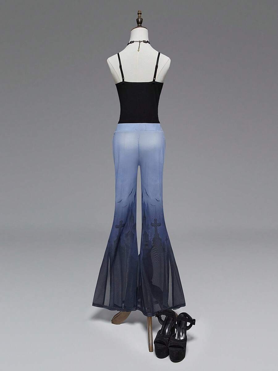 Gothic Friedhofsmuster durchsichtige Damen Schlaghose, Halloween