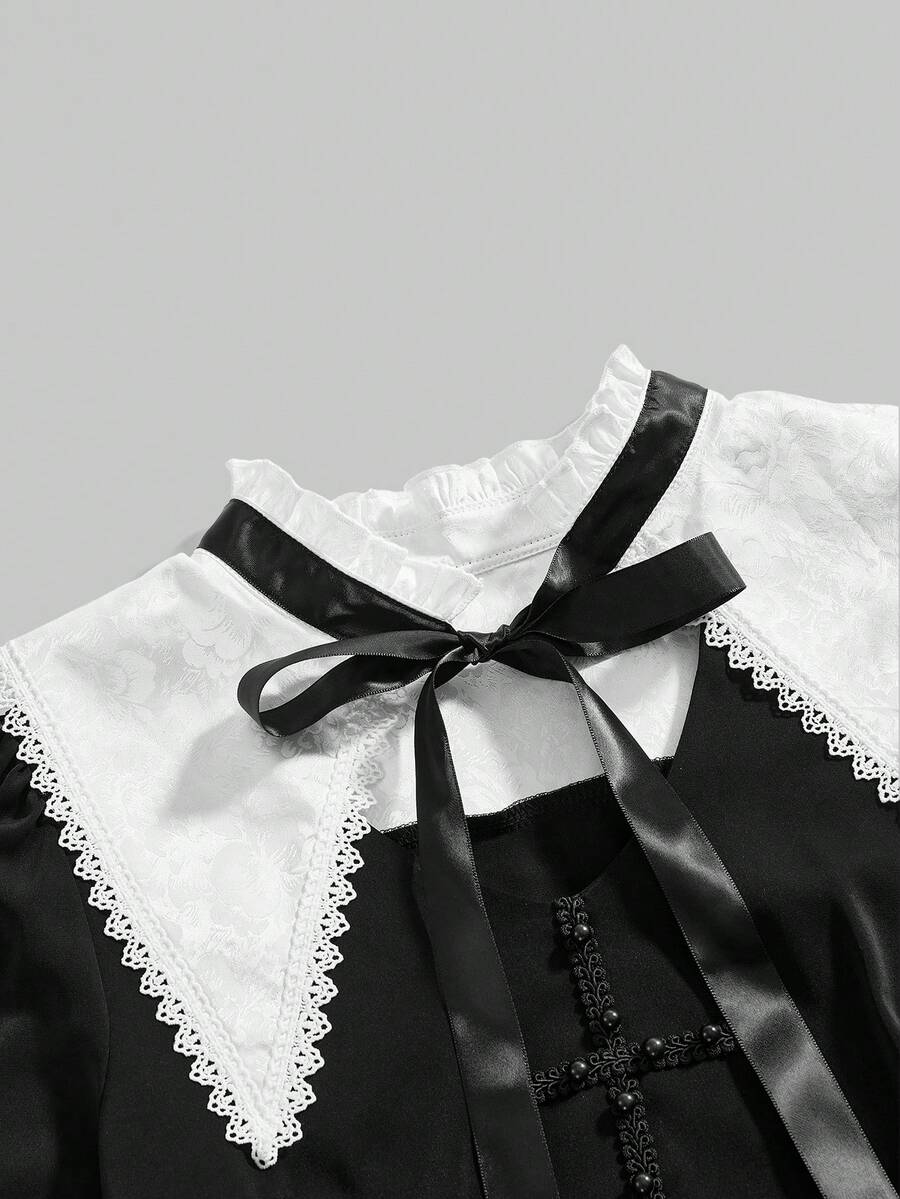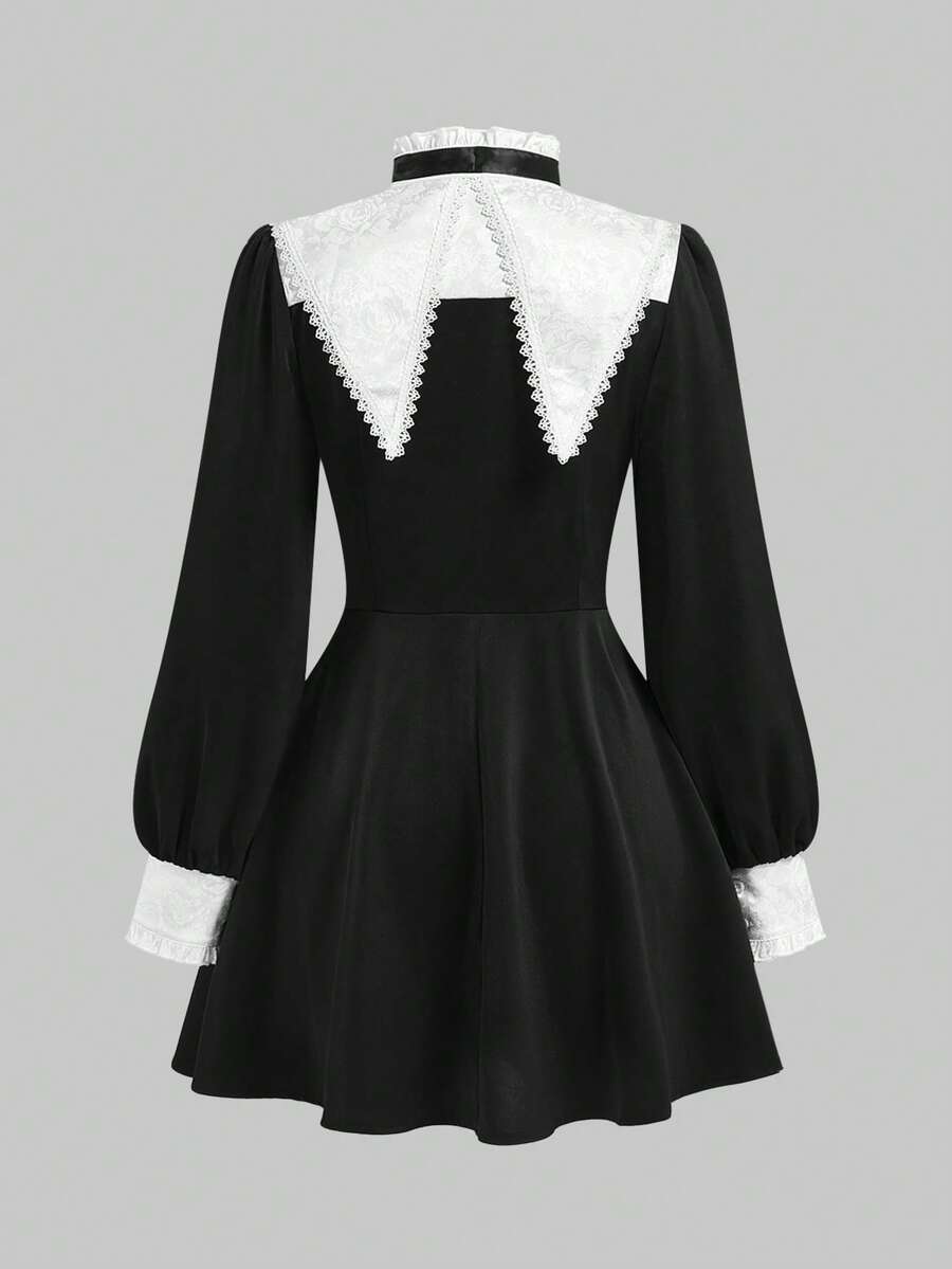 Gothic Lolita Schwarz & Weiß Schleifenkragen Kleid für Damen