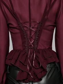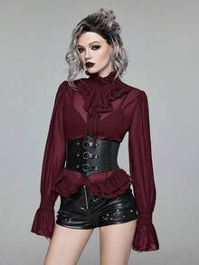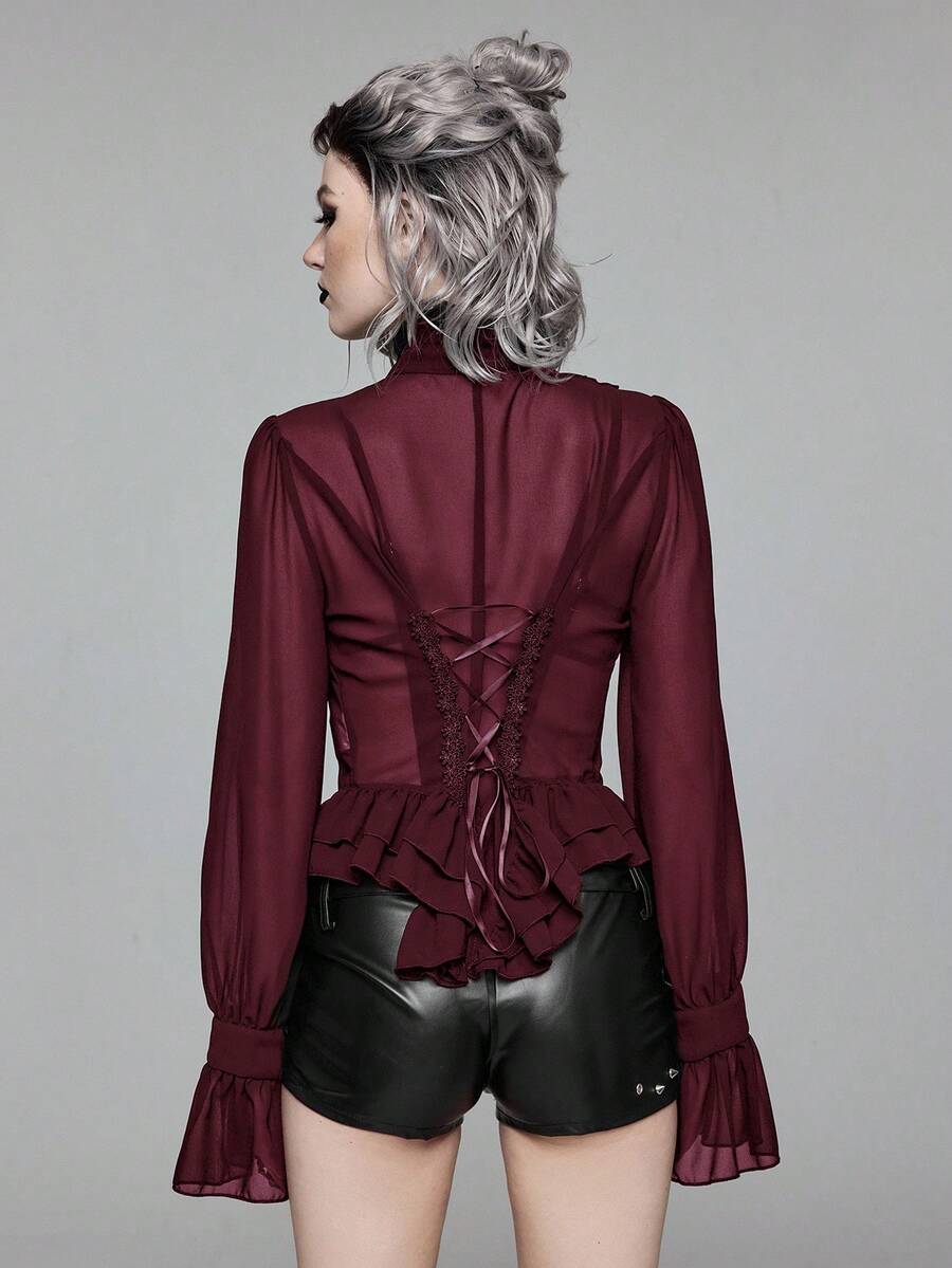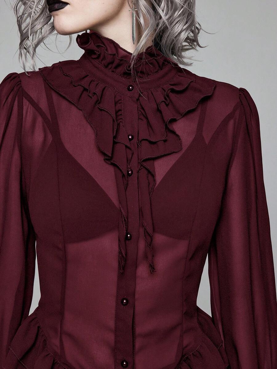 Goth Gotischer mittelalterlicher Palast-Stil transparentes Hemd mit Stehkragen