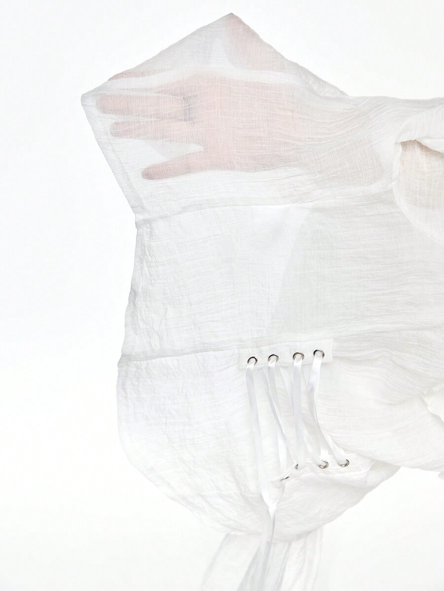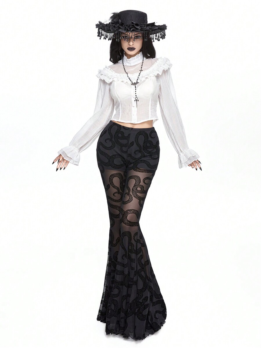 Goth Gotischer Stil Volantärmel Blusentop mit transparenten Einsätzen für Frauen