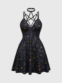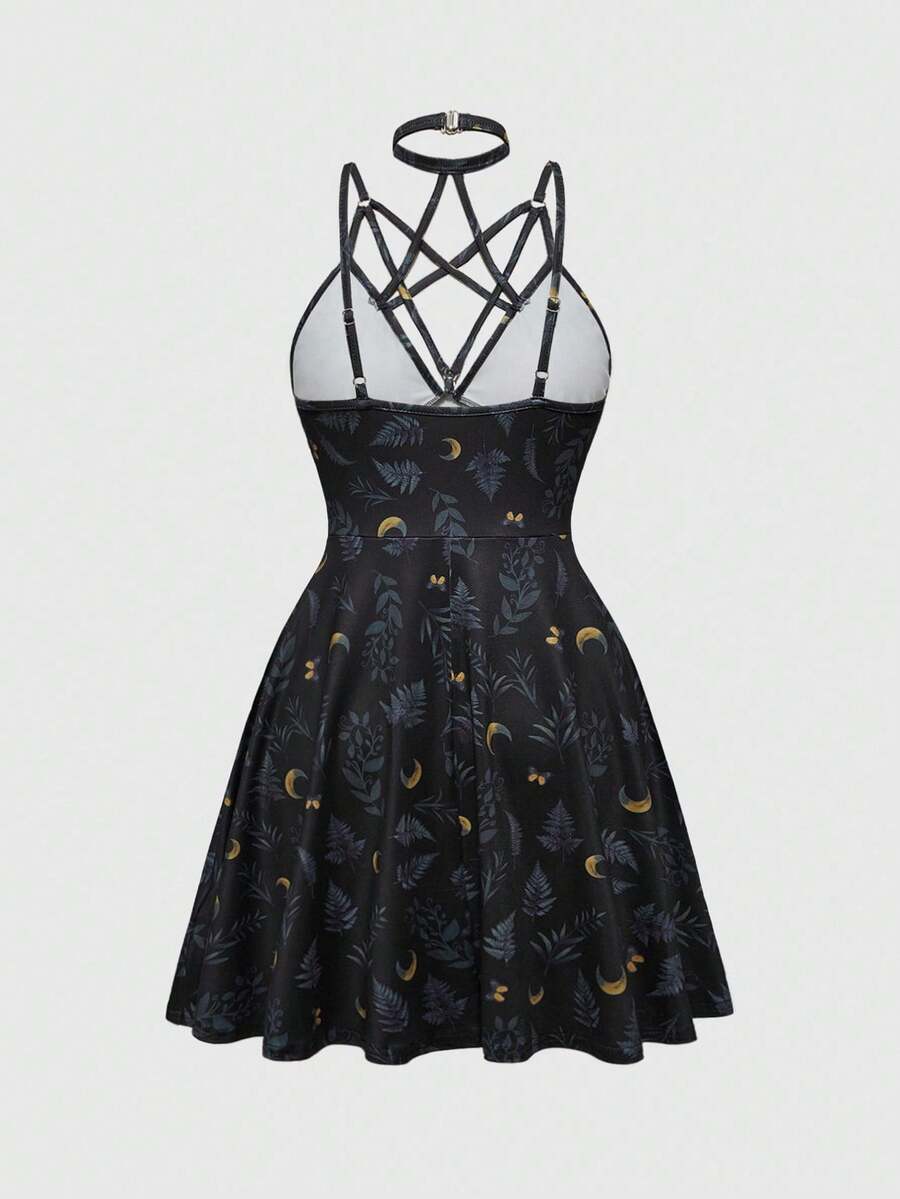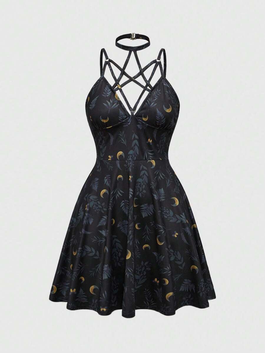 Goth Gotischer Stil, sexy Sommer Farn Muster Mini Kleid für Frauen