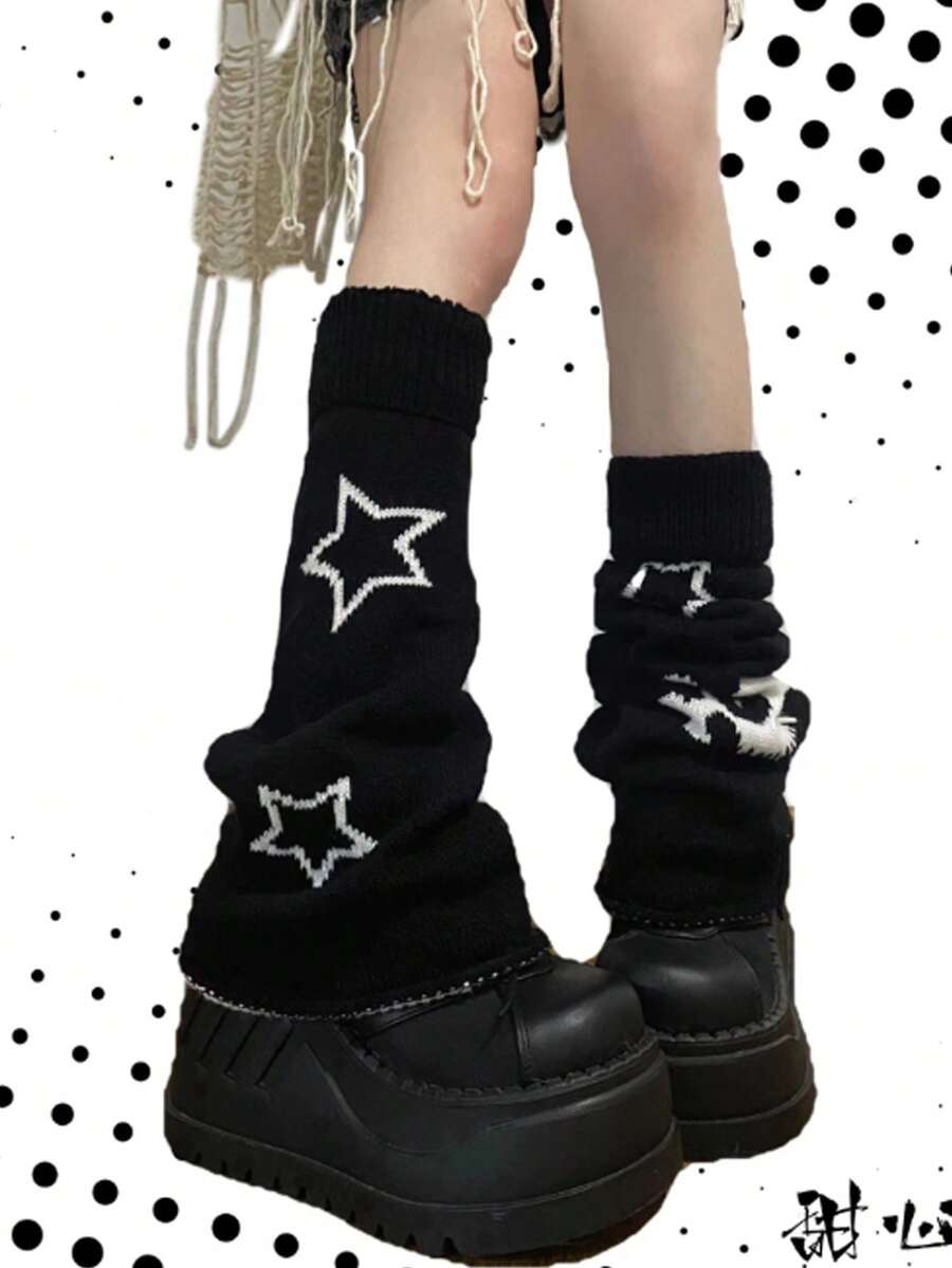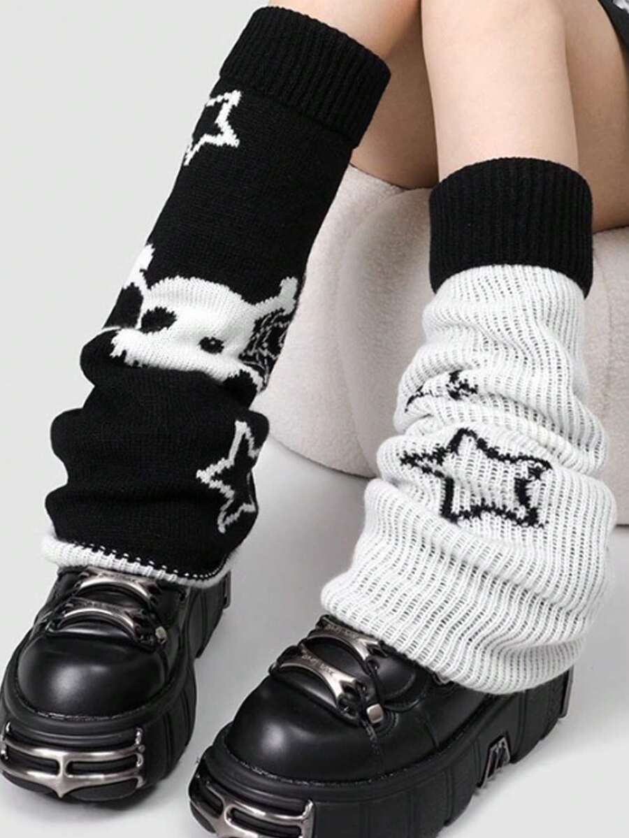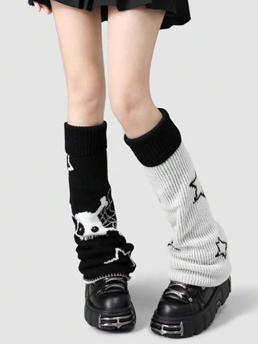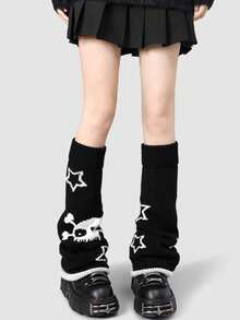 Gothic Style Thick Knitted Flared Cuff Mid-Calf Leg Warmers For Women, Autumn/Winter